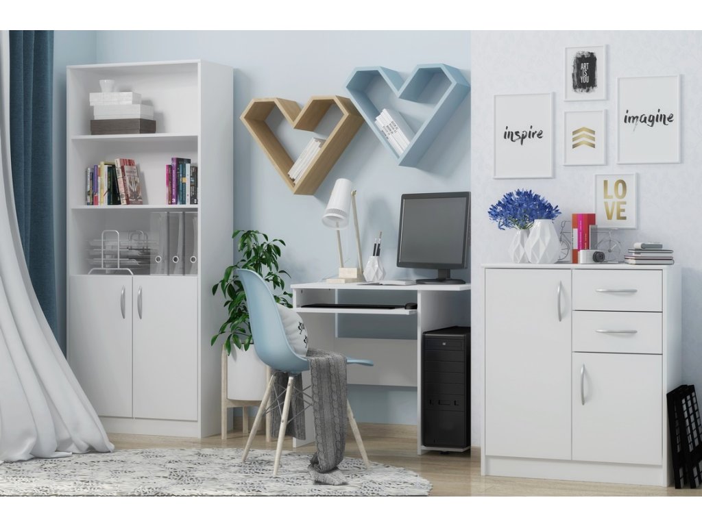 Třídveřová komoda se 2 zásuvkami v moderním provedení. Korpus i dvířka jsou z kvalitní LTD v barvě bílá. Lamino je odolné vůči vysokým teplotám, poškrábání a nárazům, hraněné ABS páskou. Jasně viditelná struktura dřeva. Pojezdy v zásuvkách jsou kovové s plastovými kolečky. Dodáváme v demontovaném stavu.Additional parameters