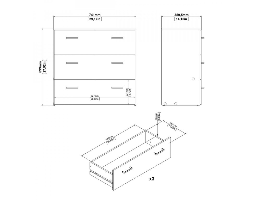 Moderní a praktická komoda Sid 3S vhodná do každé domácnosti. Komoda má tři zásuvky.