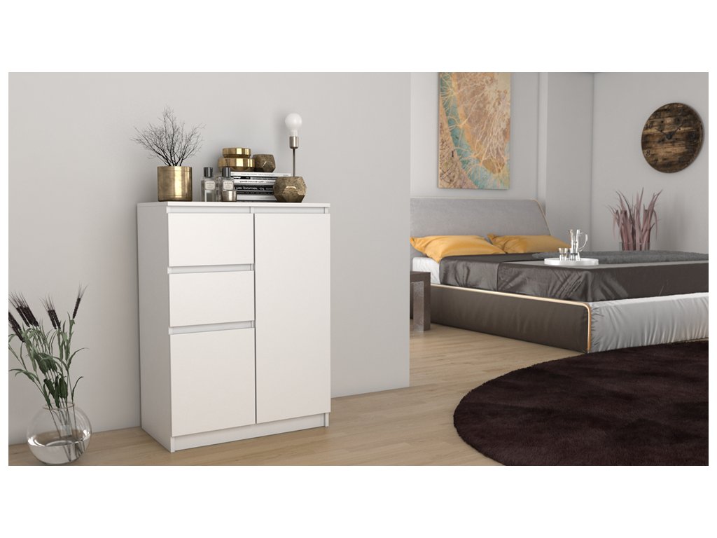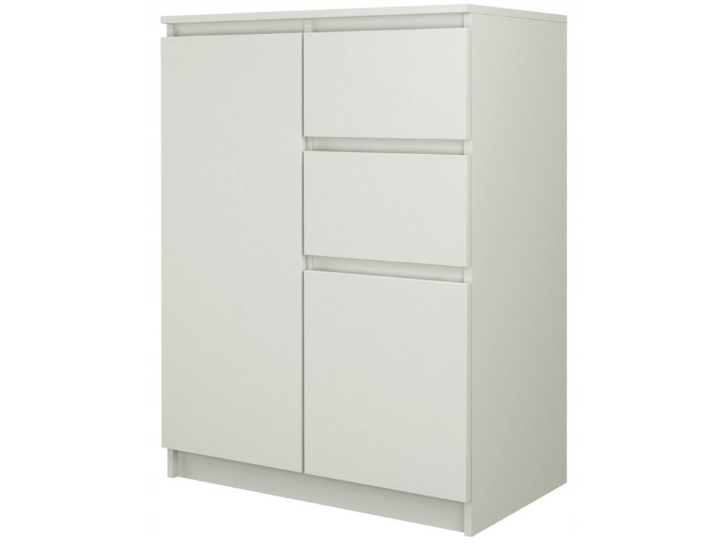 Komoda 3 zásuvky TORINO bílá, kovové úchytky