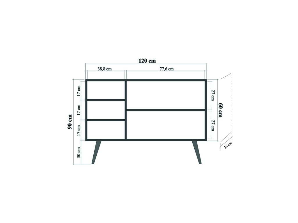 Komoda 6 zásuvek TORINO kovové úchytky