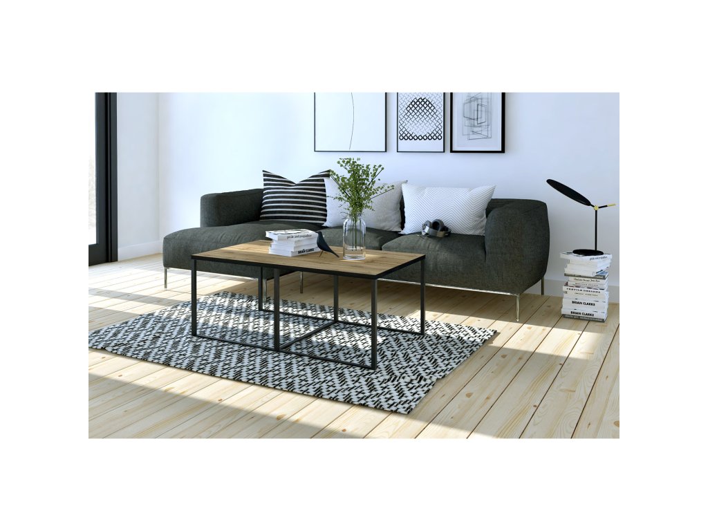 Set 2 ks stolků, MDF deska, dekor divoký dub, kovová podnož, černý lak