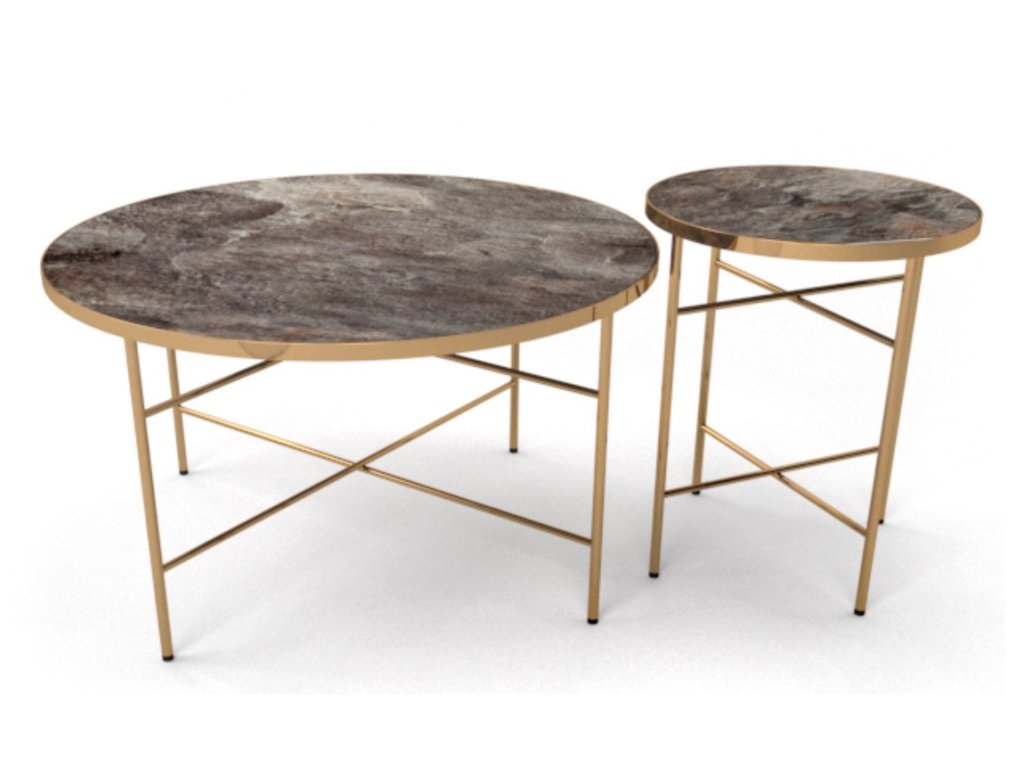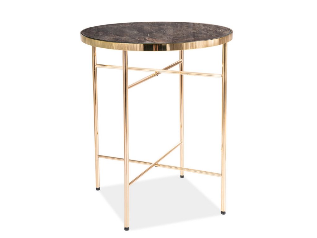 Konferenční stolek v moderním stylu glamour. Konstrukce je z kovu ve zlaté barvě, deska stolku je z tvrzeného skla s efektem mramoru. Tento stylový kousek v moderním dizajnu se bude vyjímat v každém interiéru. Dodáváme v demontovaném stavu.Additional parameters