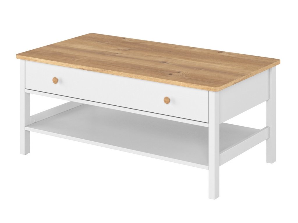 Konferenční stolek se zásuvkou. Tento elegantní nábytek dodá romantickou atmosféru pokojíčku malé princezny i větší slečny. Stolek je vyroben z desky LTD v kombinaci s MDF v barvě bílé s doplňkovou barvou dub Nash ( 22 mm ). Stolek má v horní části zásuvku. Úchyty jsou plastové v barvě dub nash. Dodáváme v demontovaném stavu.Additional parameters