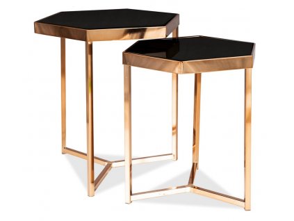 Set 2 ks stolků, MDF deska, dekor černý mramor, kovová podnož, černý lak