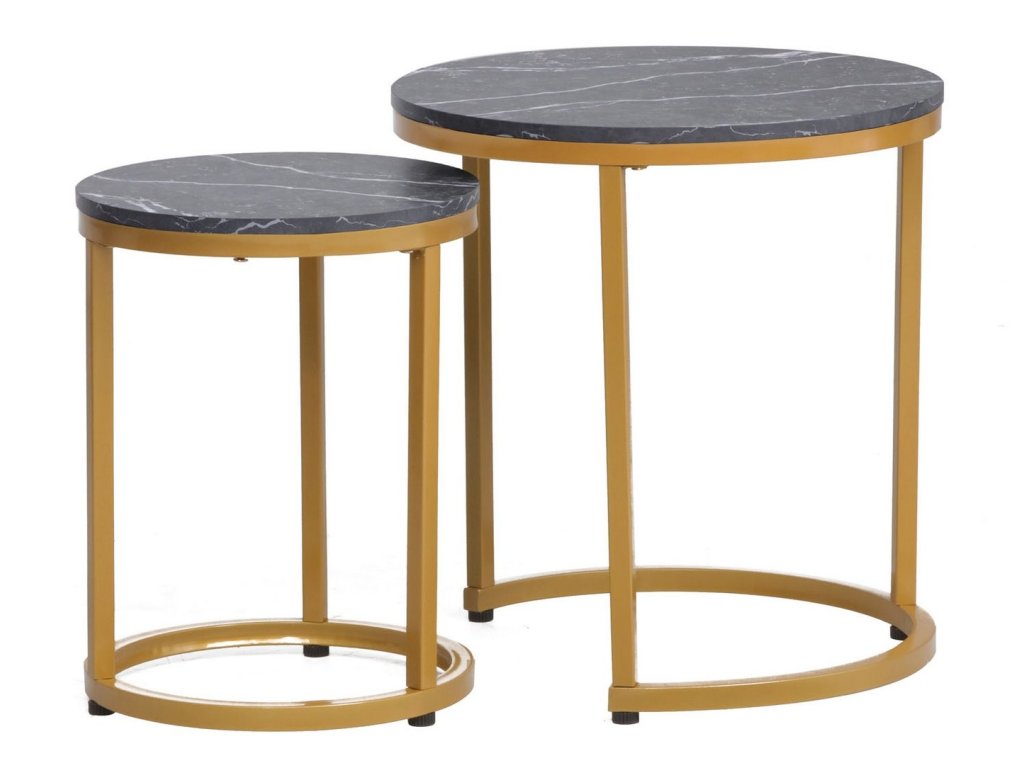 Sada konferenčních stolků 2 ks BOLA černý mramor/zlatá