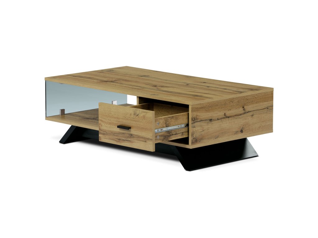 Stůl konferenční, MDF, 3D dekor divoký dub, 8mm skleněný bok.