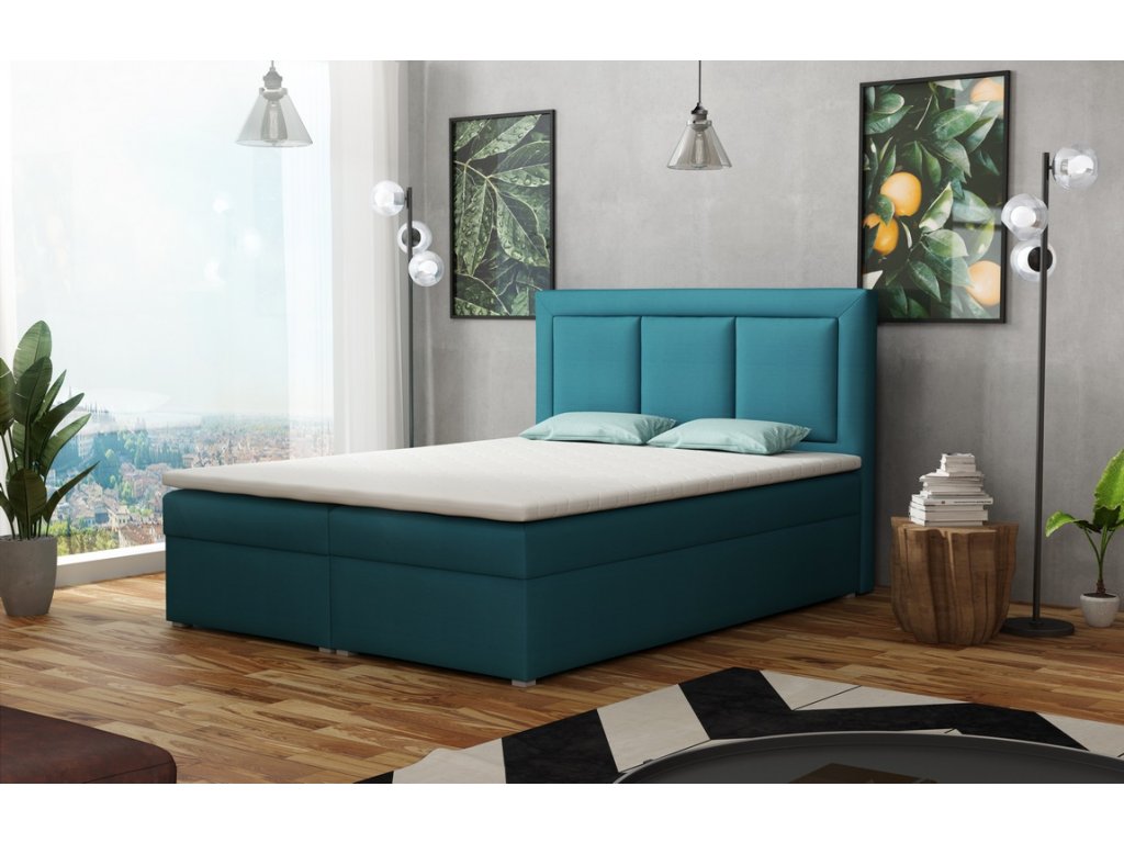 Elegantní kontinentální postel moderního vzhledu s vysokým čelem s dekoračním prošíváním. Postel se dodává zároveň s matrací - boxspring styl. Pevná konstrukce postele je potažena látkou v barvě dle Vašeho výběru. Na ní se nachází vysoká bonelová matrace potažena stejnou látkou. Na ní je druhá tenká matrace v celku vyrobena z kvalitní hrubé PUR pěny tzv. topper. Ložní plocha činí 140 x 200 cm. Výška ložné plochy od země je cca 53 cm. Úložný prostor je k dispozici nadzvednutím matrace z boční strany postele.Additional parameters