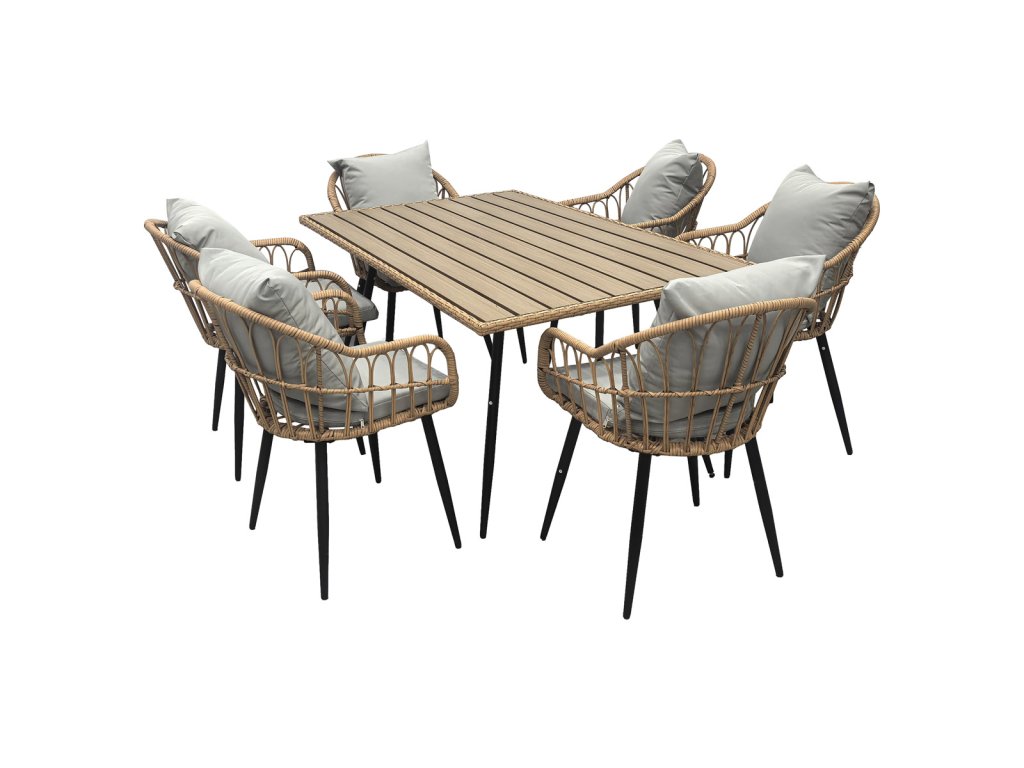 Stůl zahradní 160x95x74, kov s umělým ratanem, deska polywood
