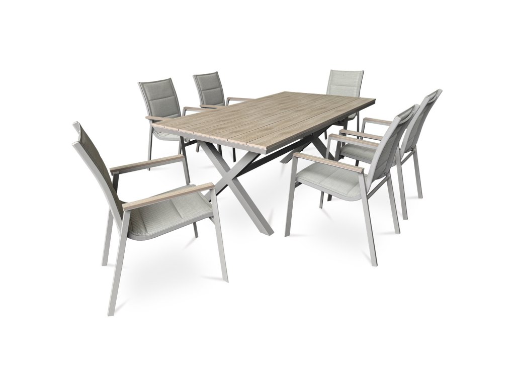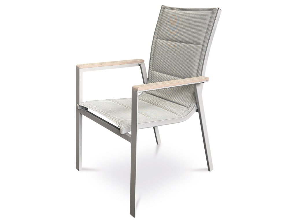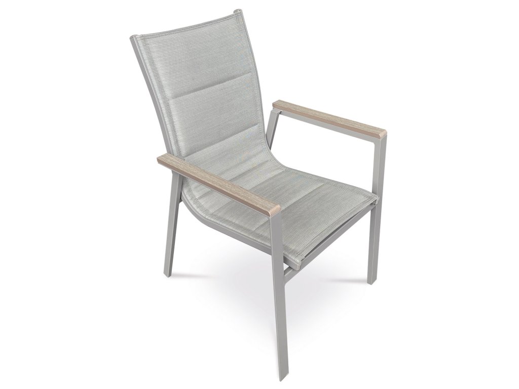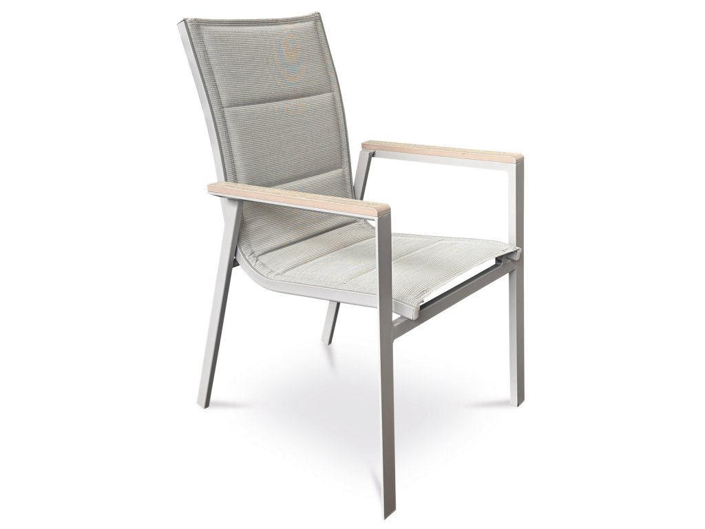 Židle zahradní béžový textilen, hliník, béžová barva, područky polywood v dekoru dubu