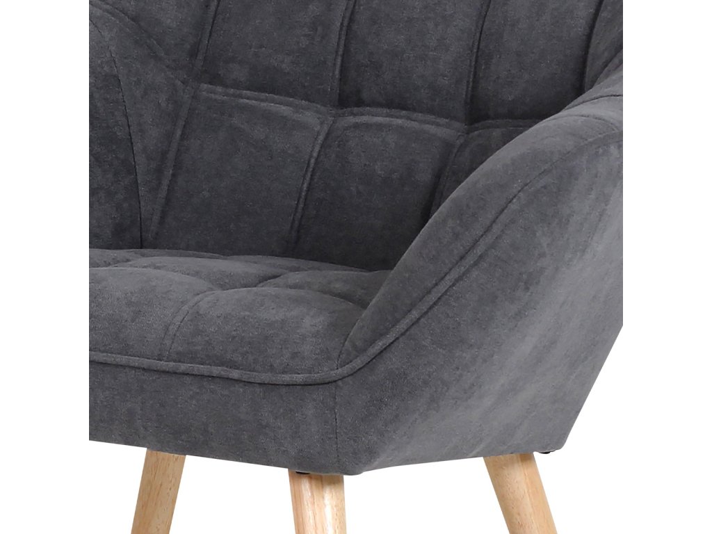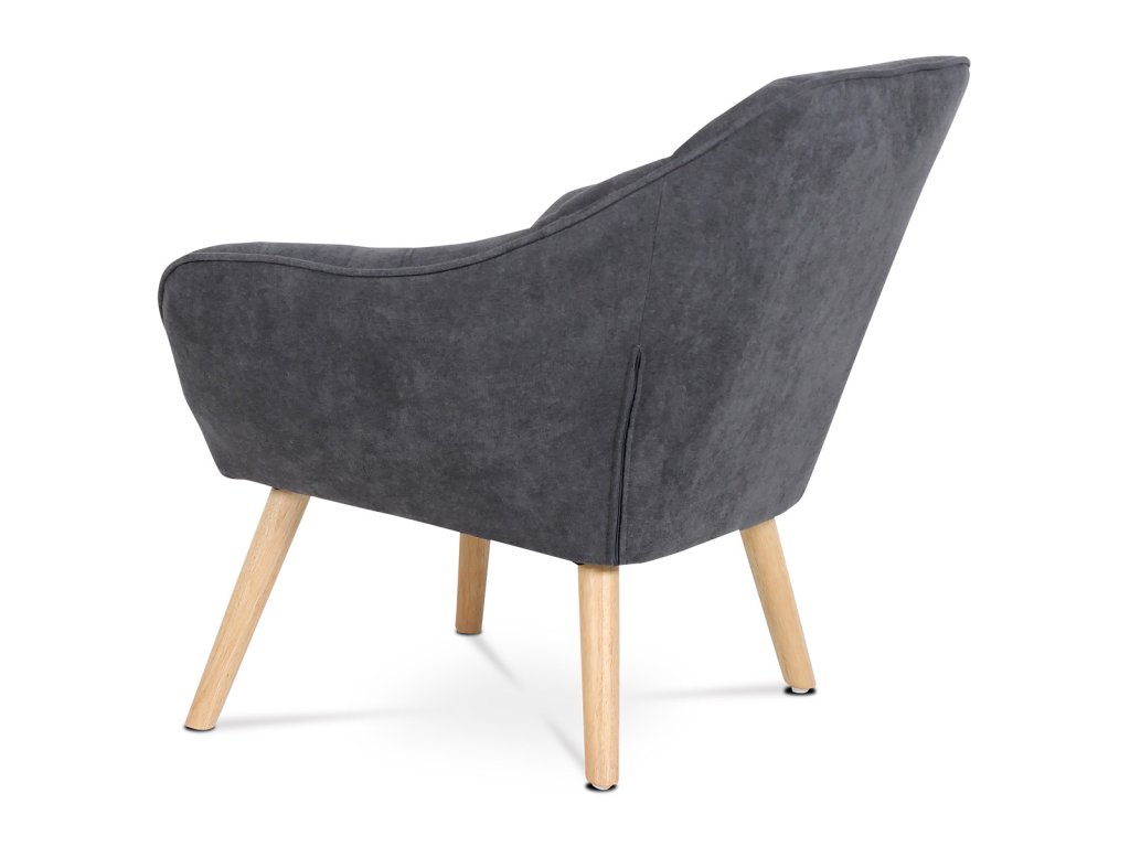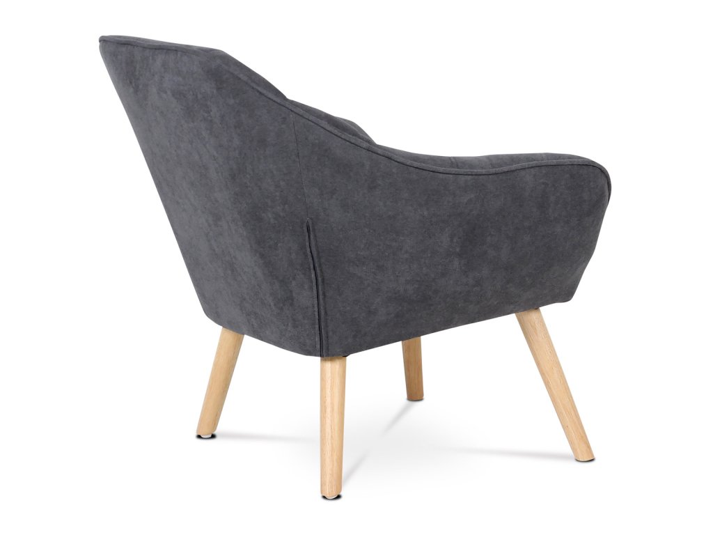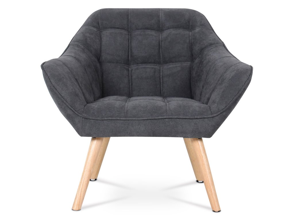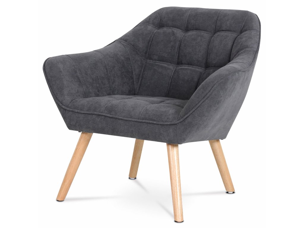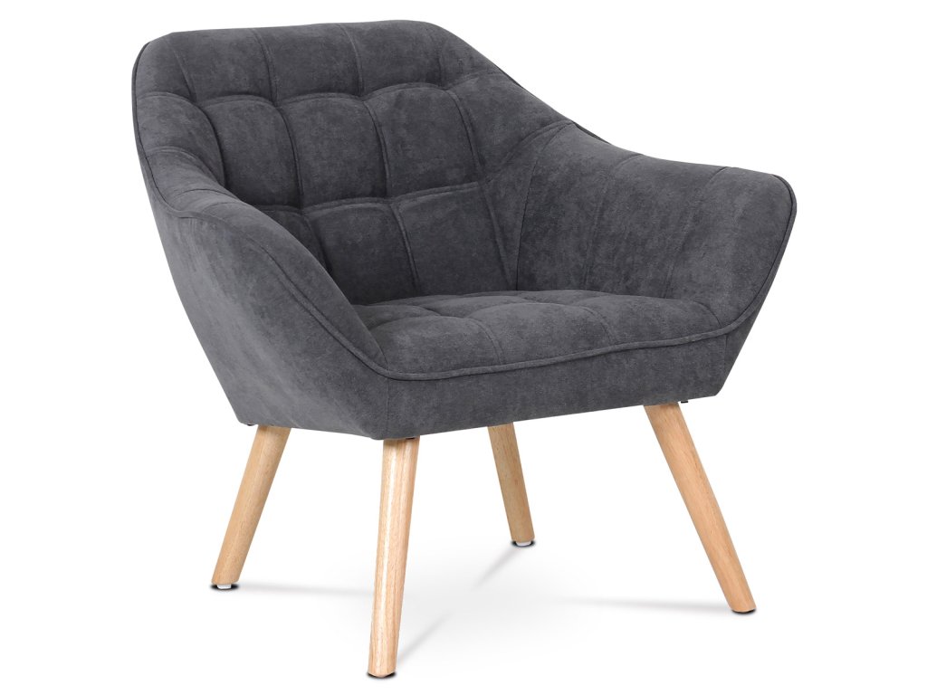 Křeslo, potah tmavě šedá látka, dřevěné nohy, masiv kaučukovník, přírodní odstín a lak