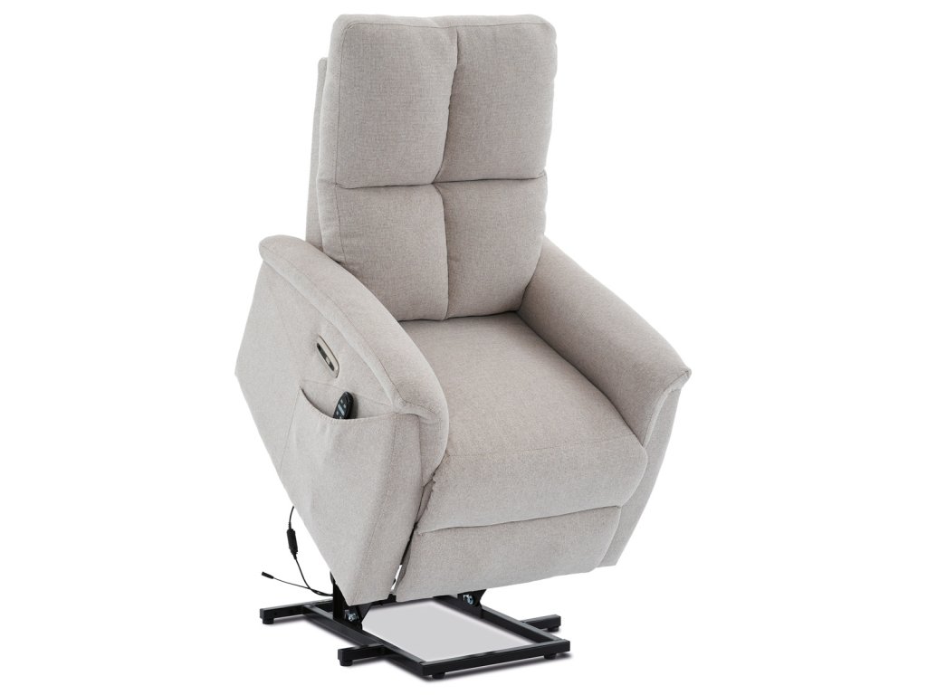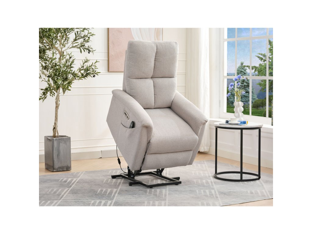 Relaxační masážní křeslo s výhřevem, 8bodová vibrační masáž, zvedací systém, USB, krémová látka