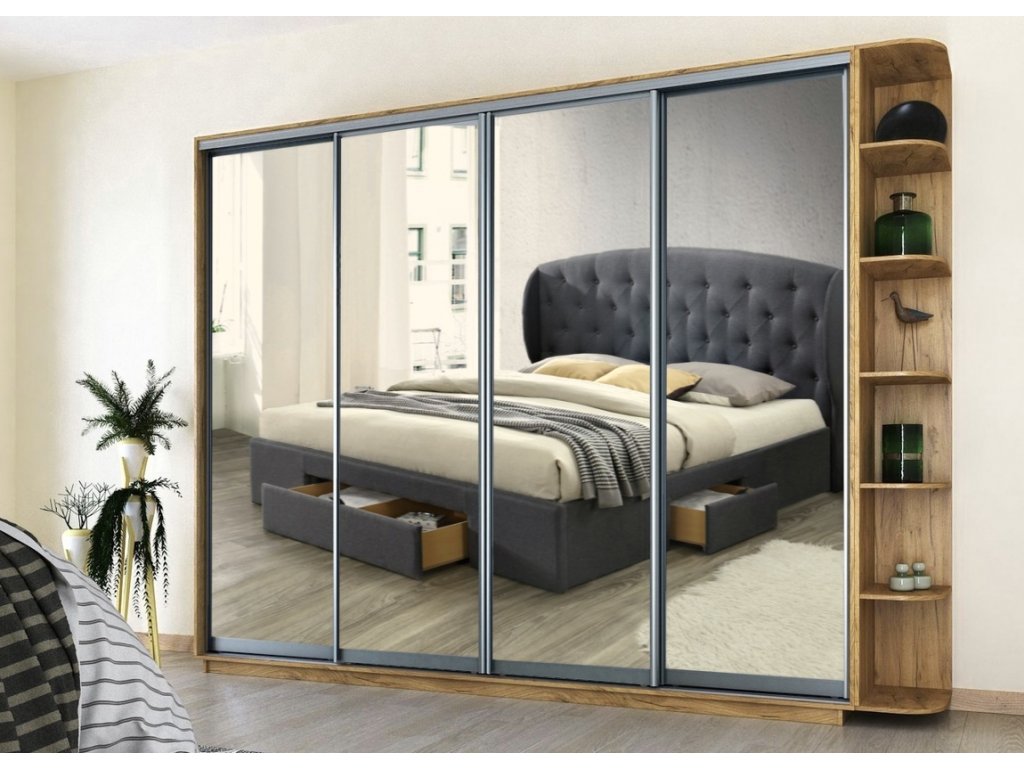 Šatní skříň rohová LEVANTO 180x120 kraft zlatý/zrcadlo