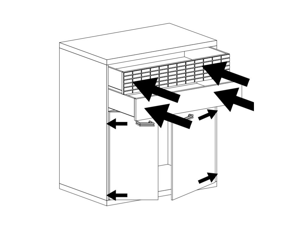 Komoda má 2 dveře a 2 zásuvky. Jedná se o stylovou kolekci nábytku moderního stylu, který je vhodný do obývacího pokoje a ložnice. Barevné provedení dub ribbeck. Vsazením ozdobné kostičkované lišty je zvýrazněn rustikální vzhled masivního dřeva. Nábytek je vyroben z kvalitního lamina 16 mm, některé desky jsou zesíleny na 48 mm, vše ohraničené ABS páskou. Dvířka mají systém tichého zavírání. Zásuvky jsou opatřeny systémem PUSH TO OPEN ( zatlač a otevři ). Možnost dokoupit LED osvětlení. Dodáváme v demontovaném stavu.Additional parameters