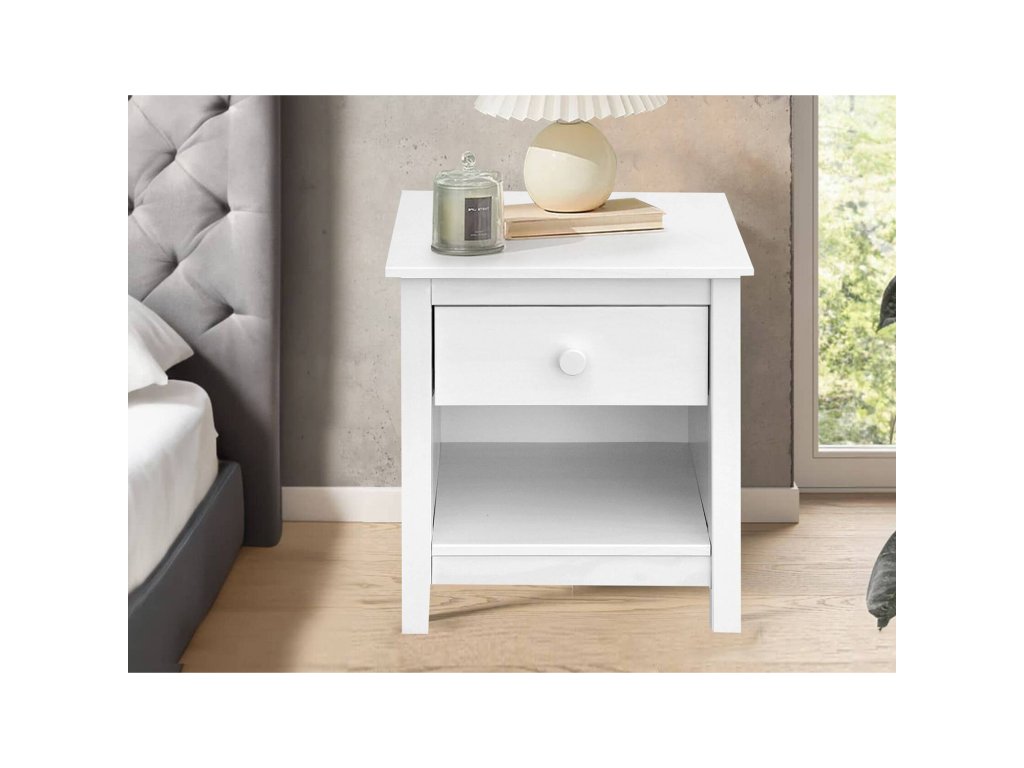 materiál masiv borovice, barevné provedení bílý lakjedna zásuvka s kovovými pojezdy