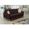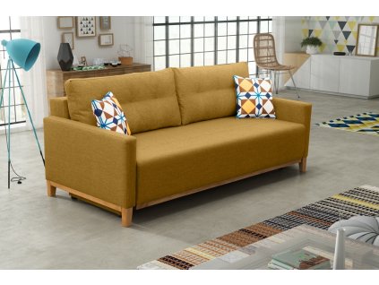 Pohovka Aristo ve skandinávském designu zaujme především svým jednoduchým a funkčním zpracováním. Pohovka je rozkládací a samozřejmostí je i úložný prostor, který poslouží např. na lůžkoviny. Jednoduchým rozložením pomocí automatu, získáte lůžko k příležitostnému přespání Vaší návštěvy. Návod na rozložení můžete shlédnout v krátkém gifu v doplňkových fotografiích. Naleznete tam také detailní rozměry pohovky. Pohodlí při sezení zajišťuje výplň sedáku, která je složena z pružin bonell a kvalitní PUR pěny a také opěrné polštáře, které jsou odnímatelné a můžete si je přizpůsobit podle svých potřeb. Pohovku nabízíme v několika barevných provedeních. Úvodní fotografie je ilustrační, vzorek látky, ve které bude pohovka dodána, je vyobrazen v doplňkových fotografiích. Moření dřeva není možno zvolit. V ceně pohovky jsou 2 malé vzorované polštářky, které jsou vyobrazené na fotografii. Ostatní vyobrazené doplňky a dekorace nejsou v ceně.