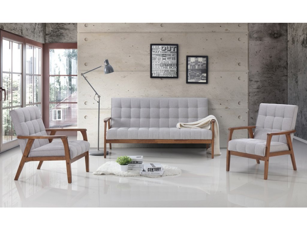Sedací souprava PETRA 3+1+1 světle šedá/ořech