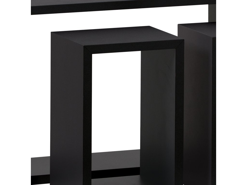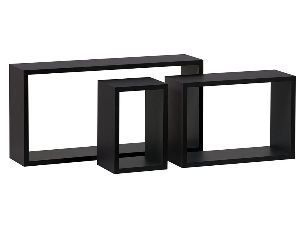 Sada moderních nástěnných poliček barvy matná černá. Sada obsahuje 3ks poliček různých velikostí. Součástí balení jsou šrouby a hmoždinky pro uchycení poliček do zdi. Nosnost poličky je od 5 kg do 15 kg podle kvality zdiva. Poličky jsou z laminovaných dřevotřískových desek.Additional parameters
