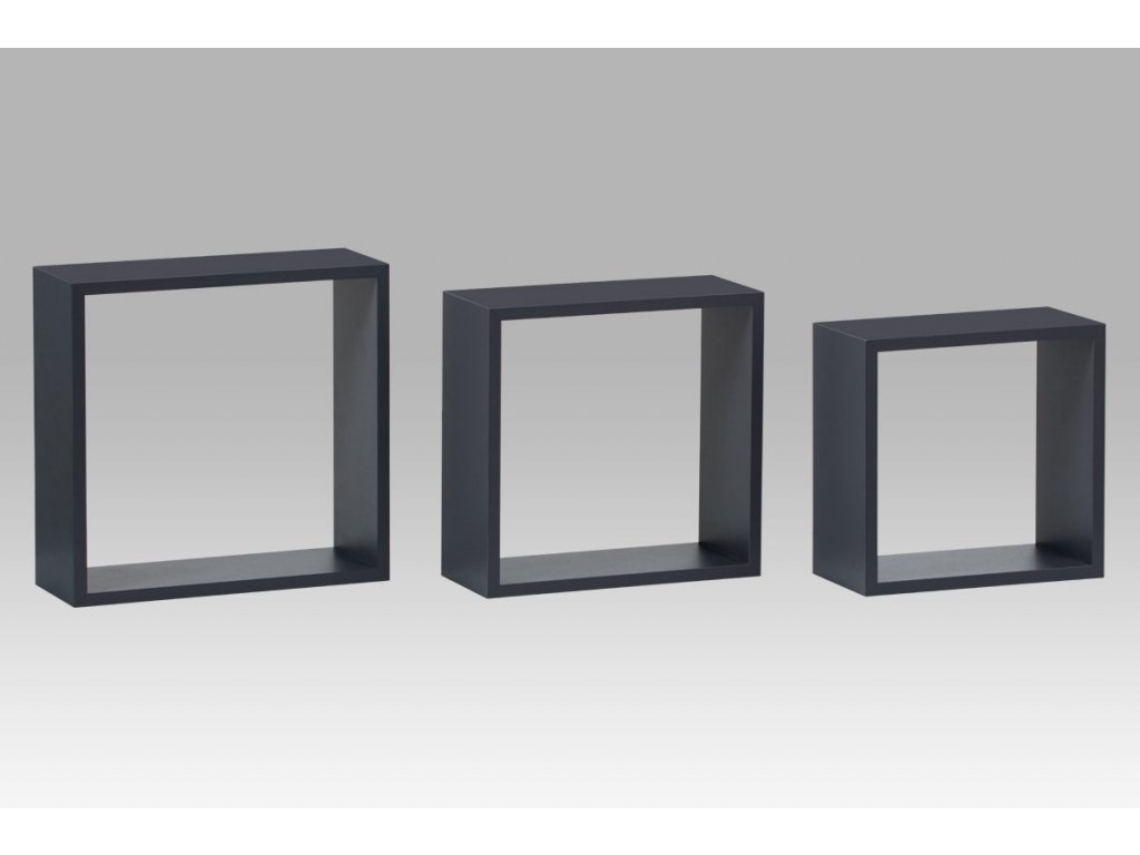 Sada moderních nástěnných poliček barvy matná šedá. Sada obsahuje 3ks poliček různých velikostí. Součástí balení jsou šrouby a hmoždinky pro uchycení poliček do zdi. Nosnost poličky je od 5 kg do 15 kg podle kvality zdiva. Poličky jsou z laminovaných dřevotřískových desek.Additional parameters