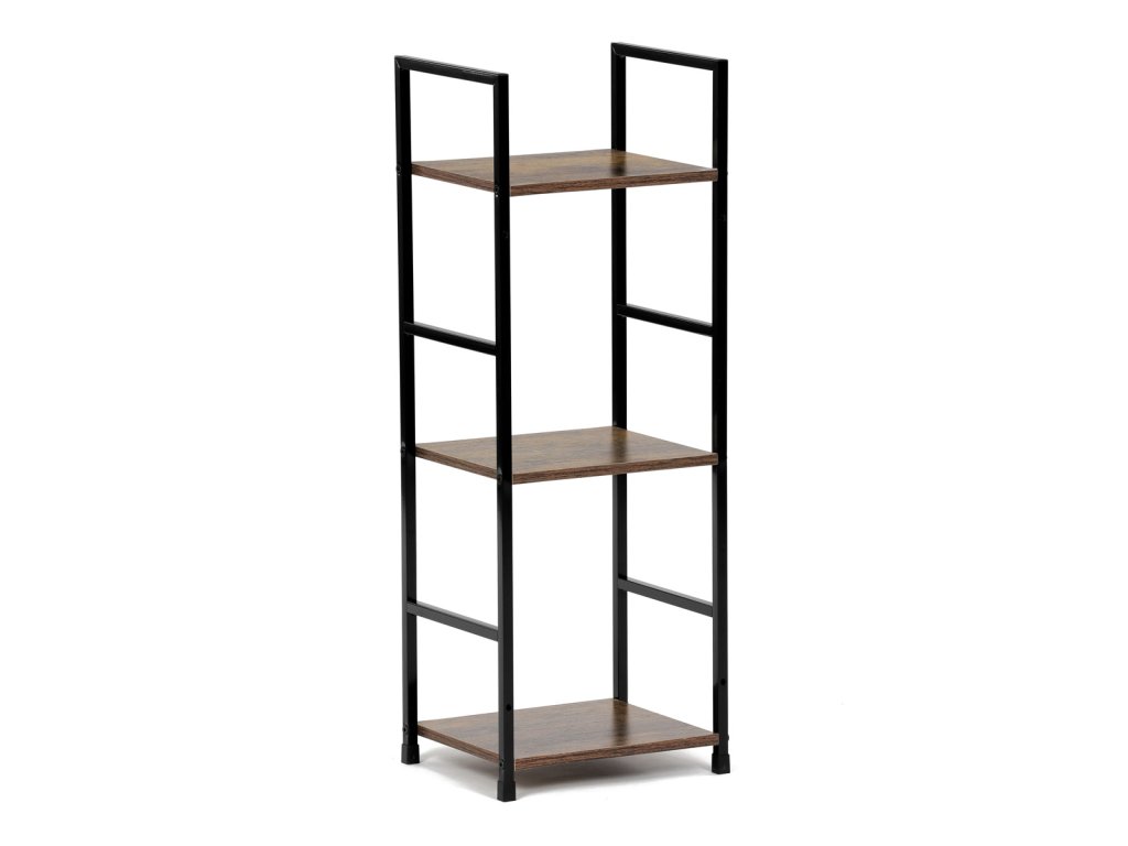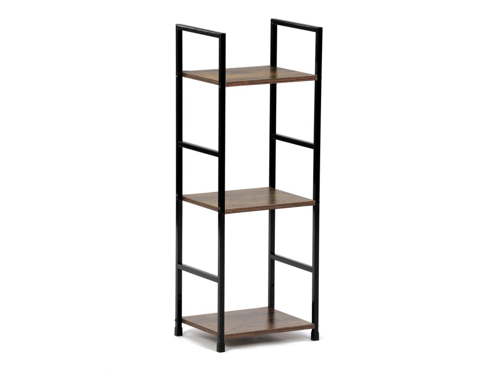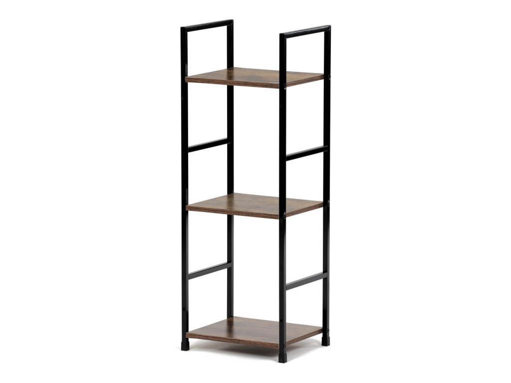 Regál, 3 police, dekor staré dřevo, MDF, černý lak