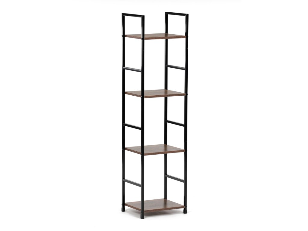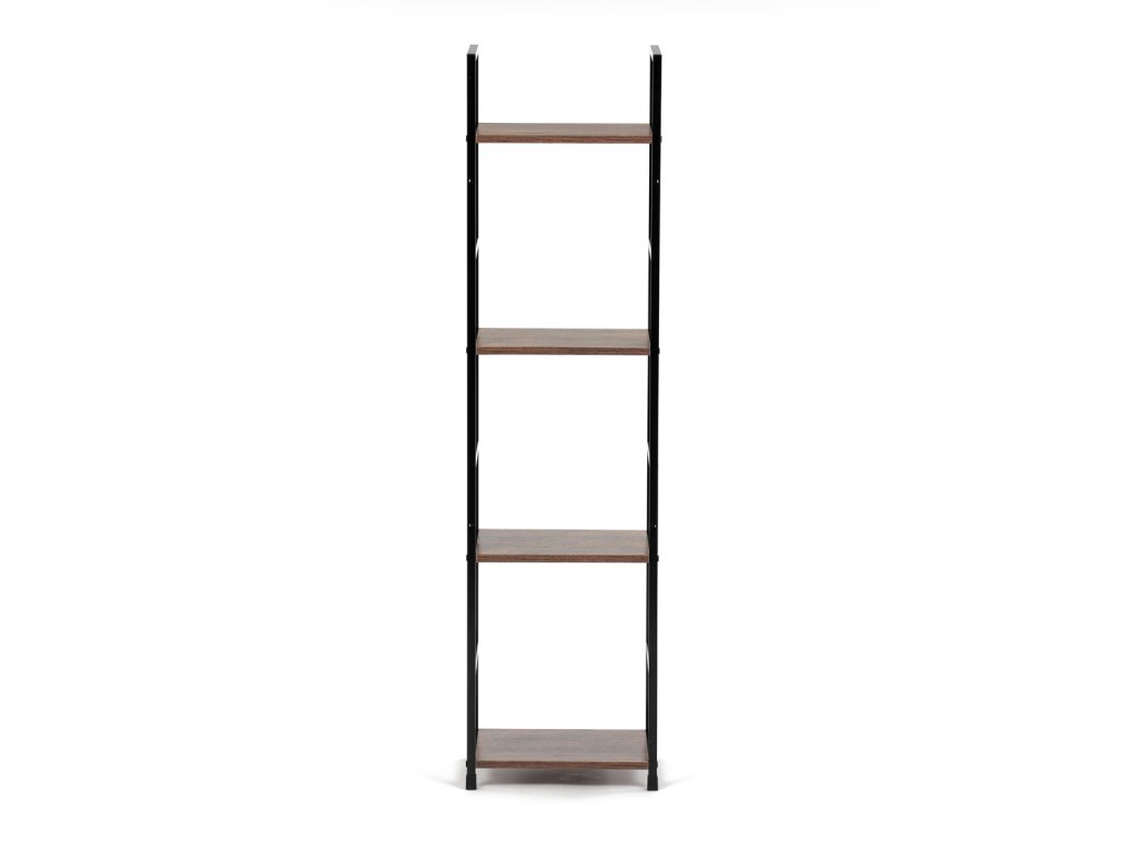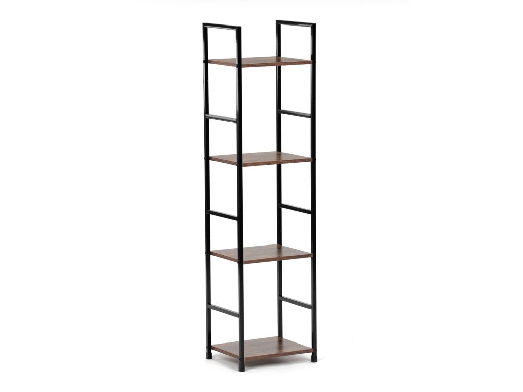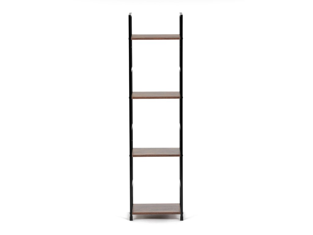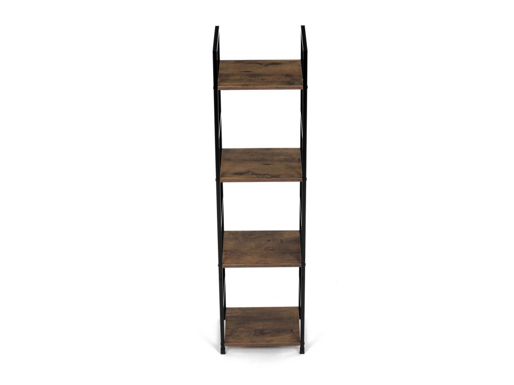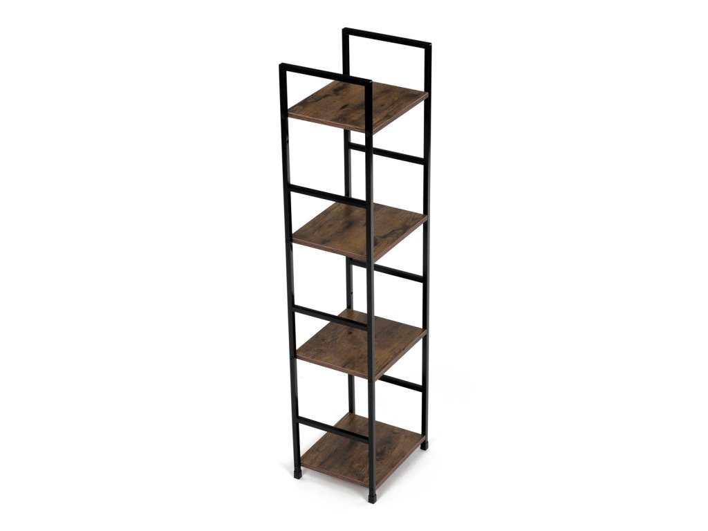 Regál, 4 police, dekor staré dřevo, MDF, černý lak