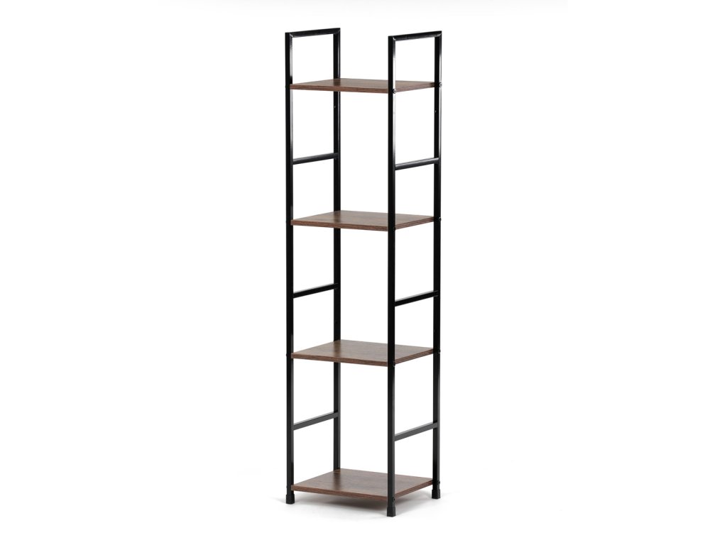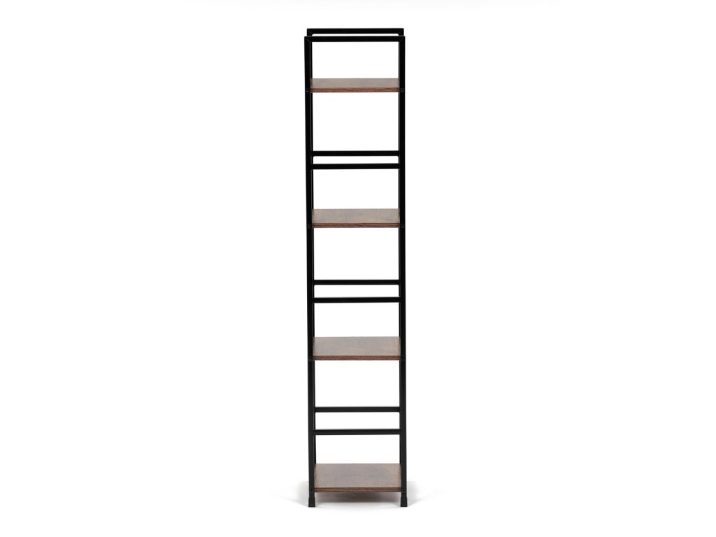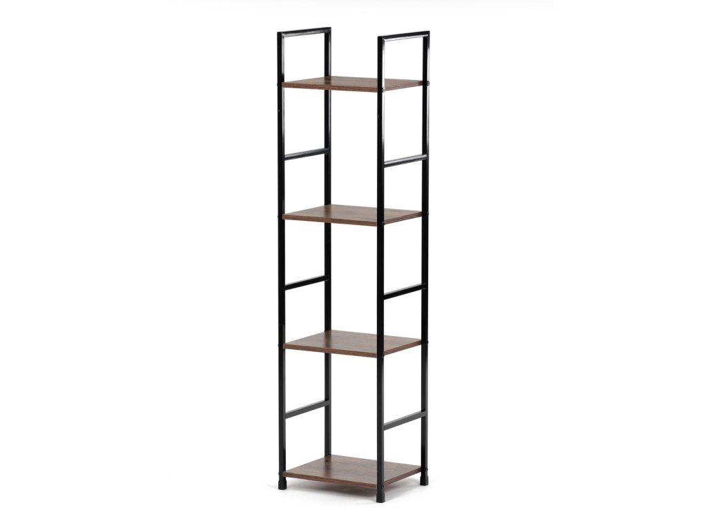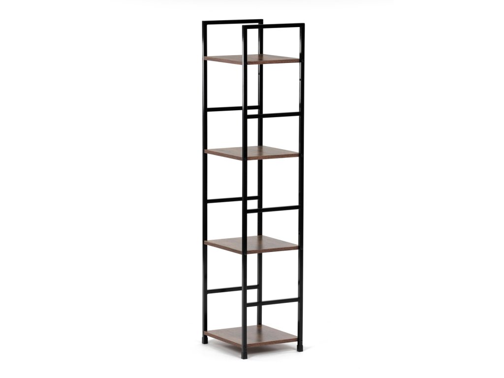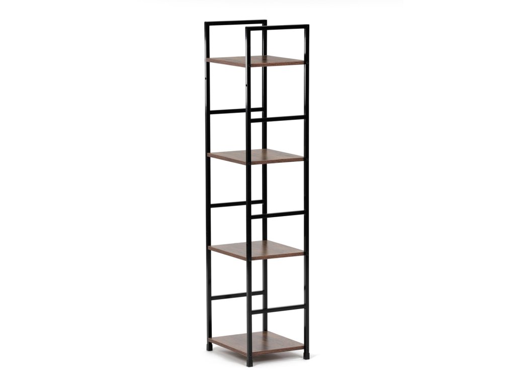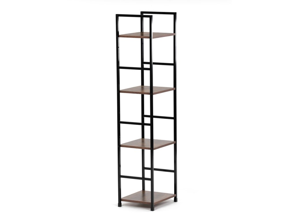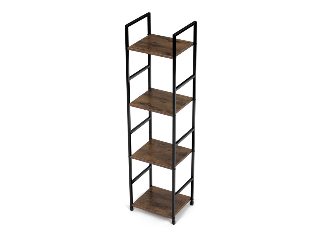 Regál, 4 police, dekor staré dřevo, MDF, černý lak