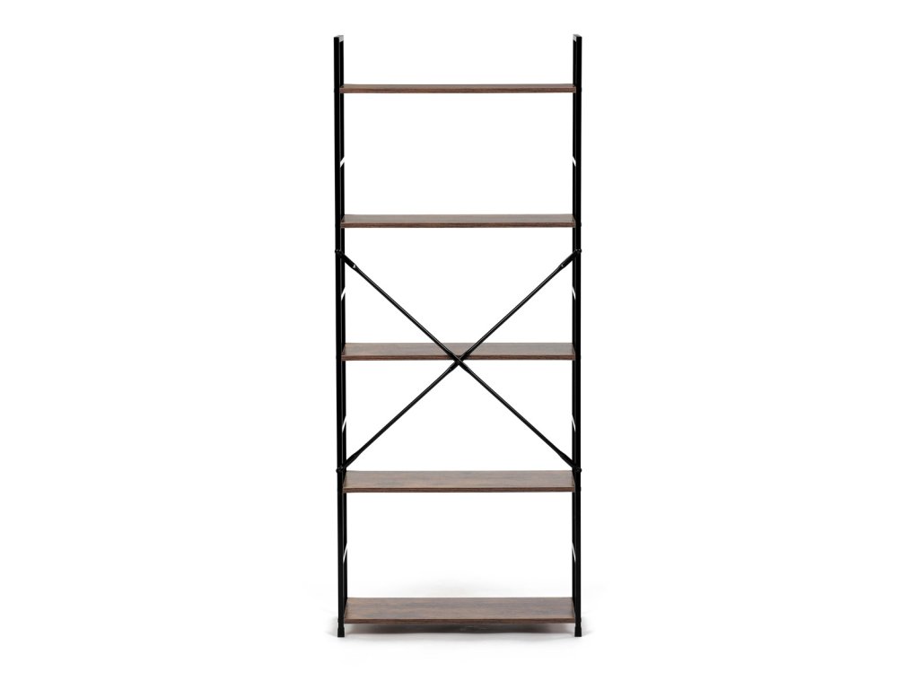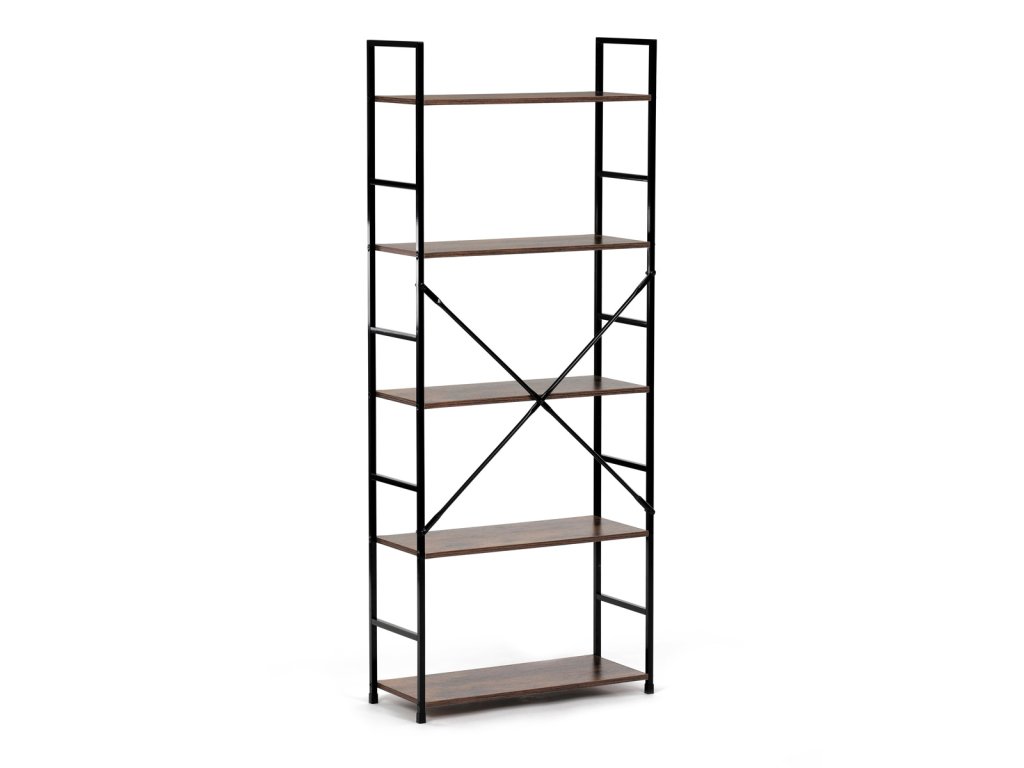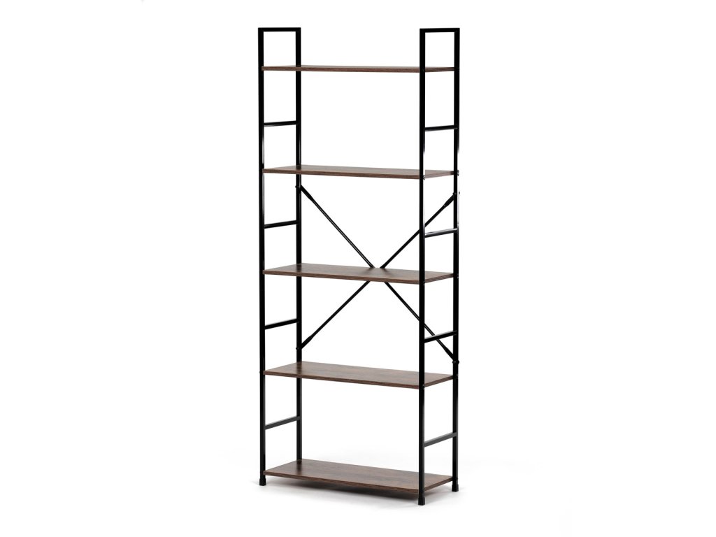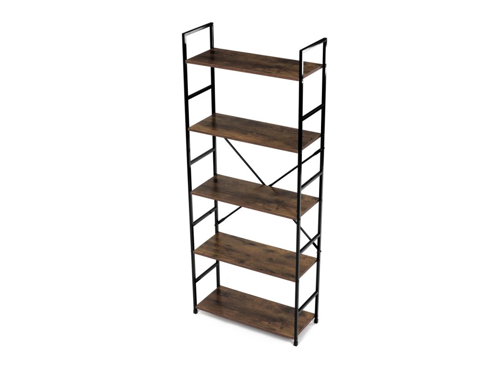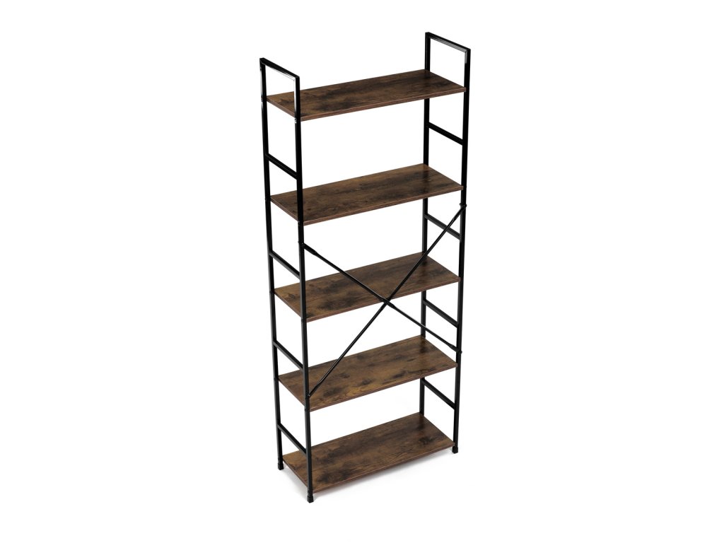Regál, 5 polic, dekor staré dřevo, MDF, černý lak