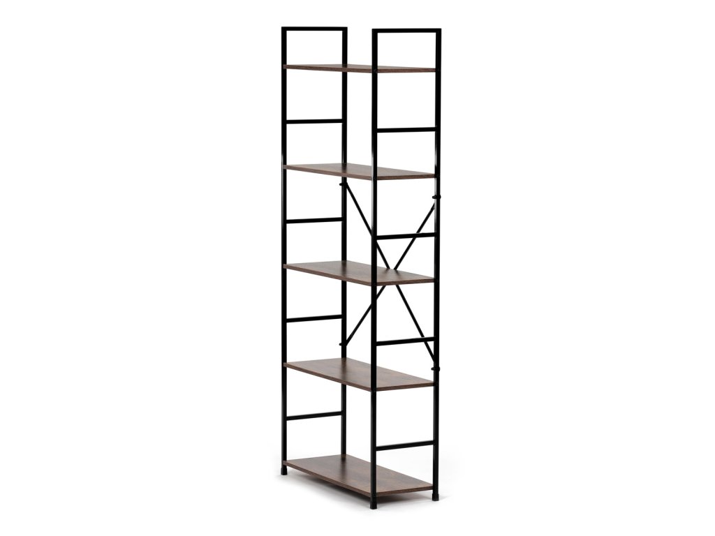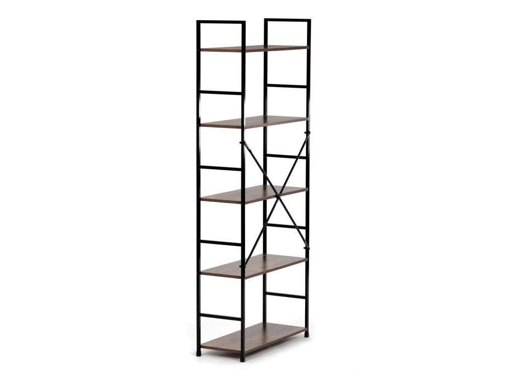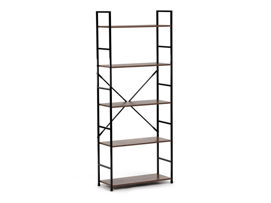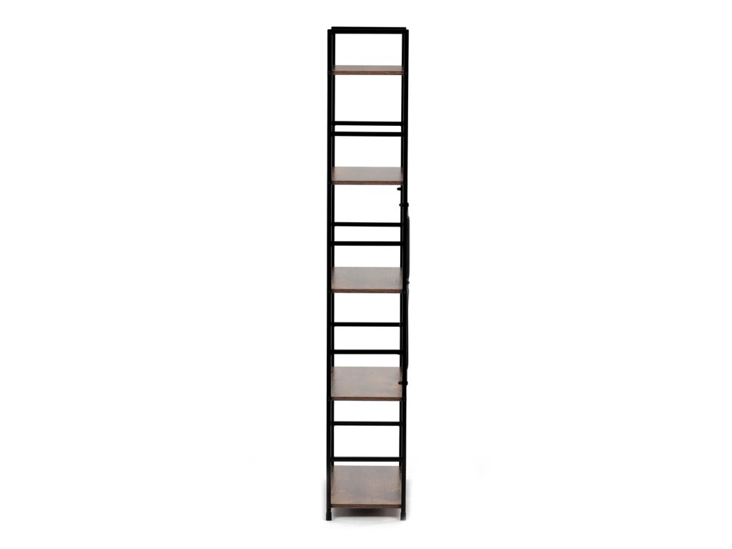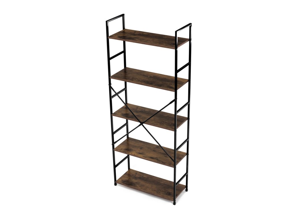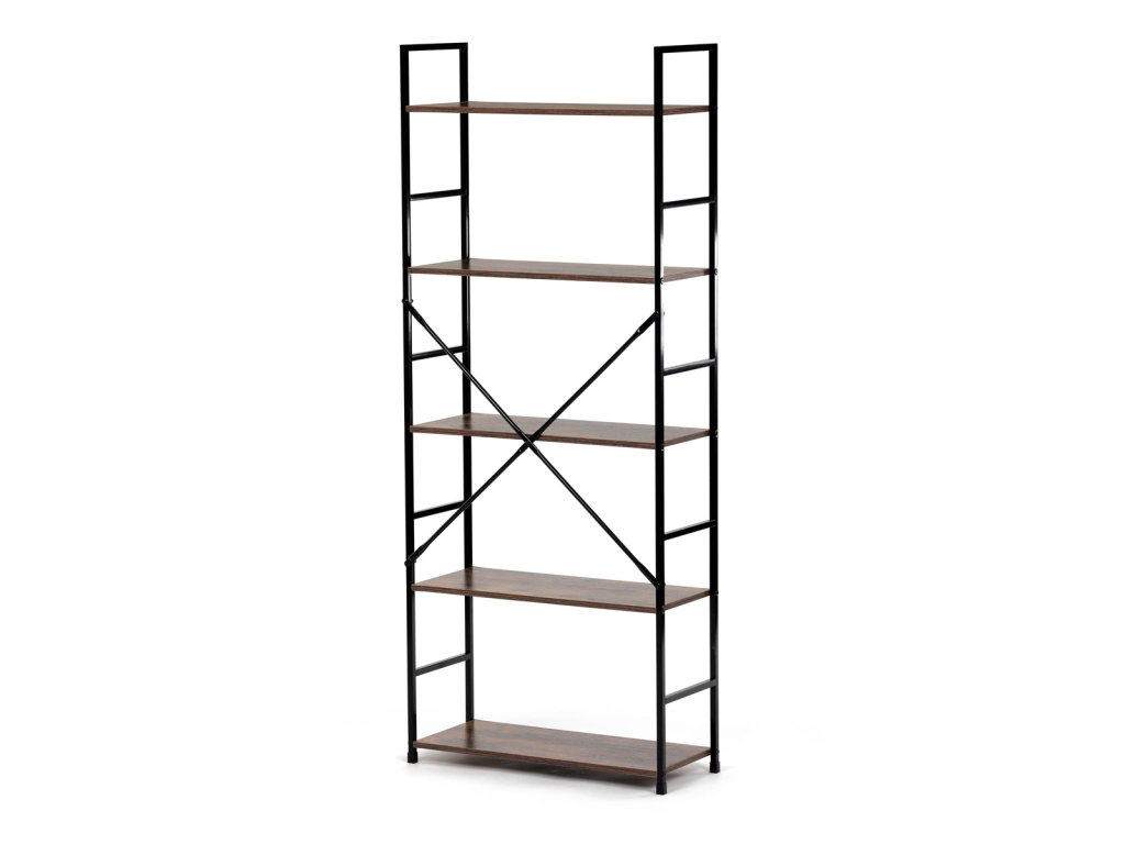 Regál, 5 polic, dekor staré dřevo, MDF, černý lak