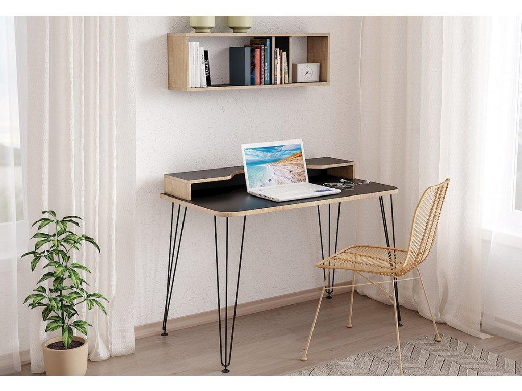 Pracovní stůl je vyroben z desky LTD v barevném provedení černá/dub sonoma. Nohy stolu jsou kovové. Dodáváme v demontovaném stavu.Additional parameters