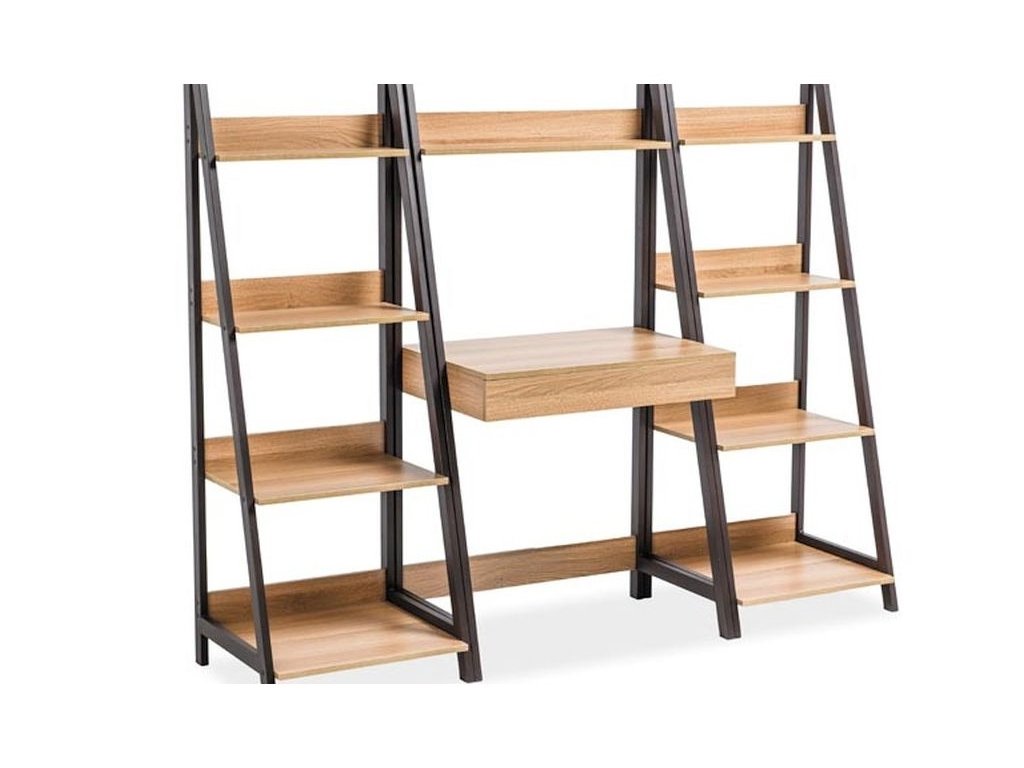 Jednoduchý, ale praktický pracovní stůl se zásuvkou. Zajímavá konstrukce nožek stolu má nahoře poličku. Konstrukce je kovová tmavě hnědé barvy, deska z kvalitního MDF v barvě dub. Vhodný i pro menší pokoje. Možno kombinovat s Matis A.Additional parameters