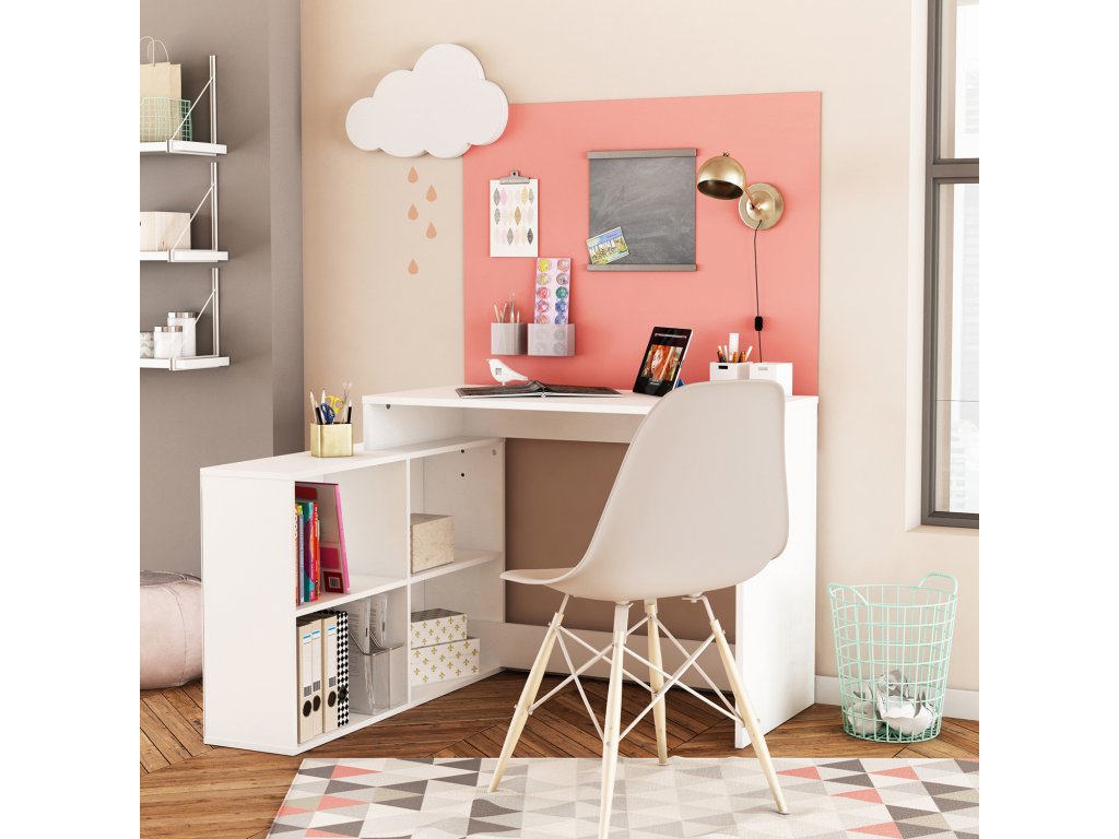 Rohový psací stůl CORNER bílý