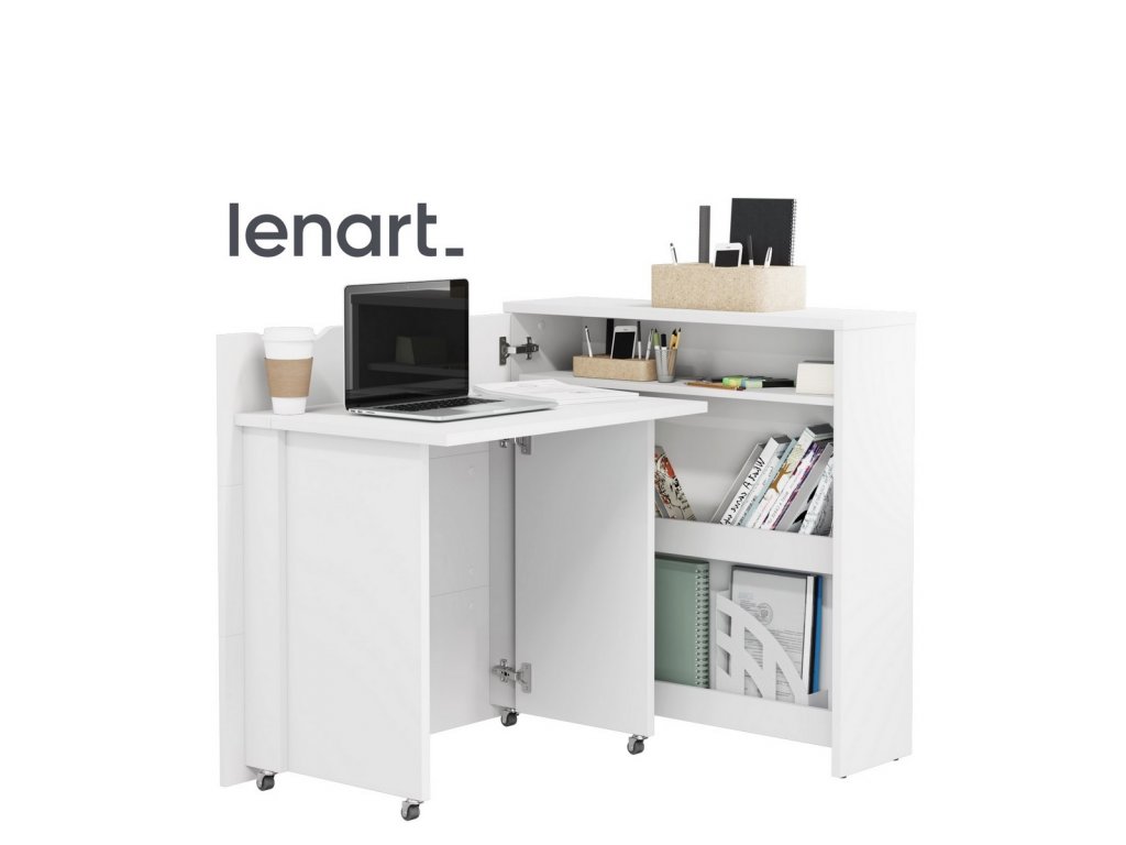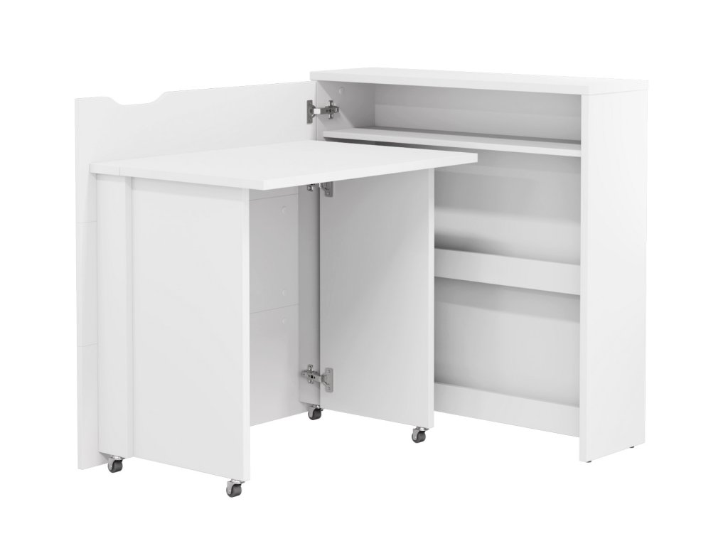 Rozkládací psací stůl v moderním a jednoduchém designu snadno složíte do komody a ušetříte tím spousty místa. Díky praktickým policím máte vše po ruce. Stůl je k dispozici ve dvou variantách - pravé nebo levé. Vyberte si ten, který lépe vyhovuje Vašim požadavkům. Kolečka umístěná pod bočními podpěrami usnadňují otevírání a zavírání stolu. Stůl je vyroben z lamina tloušťky 16 mm, pracovní deska stolu z lamina tloušťky 22 mm. Maximální nosnost police je 5 kg, pracovní desky 3 kg. Šířka stolu po rozložení je 136 cm. Dodáváme v demontovaném stavu.Additional parameters