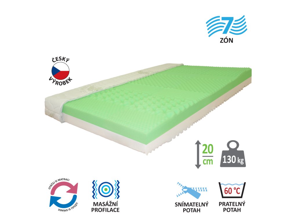 masážní profily s různou pevností stran, jádro z Flexifoam pěnypovrch je vyprofilován do 7 anatomických zón na obou stranách