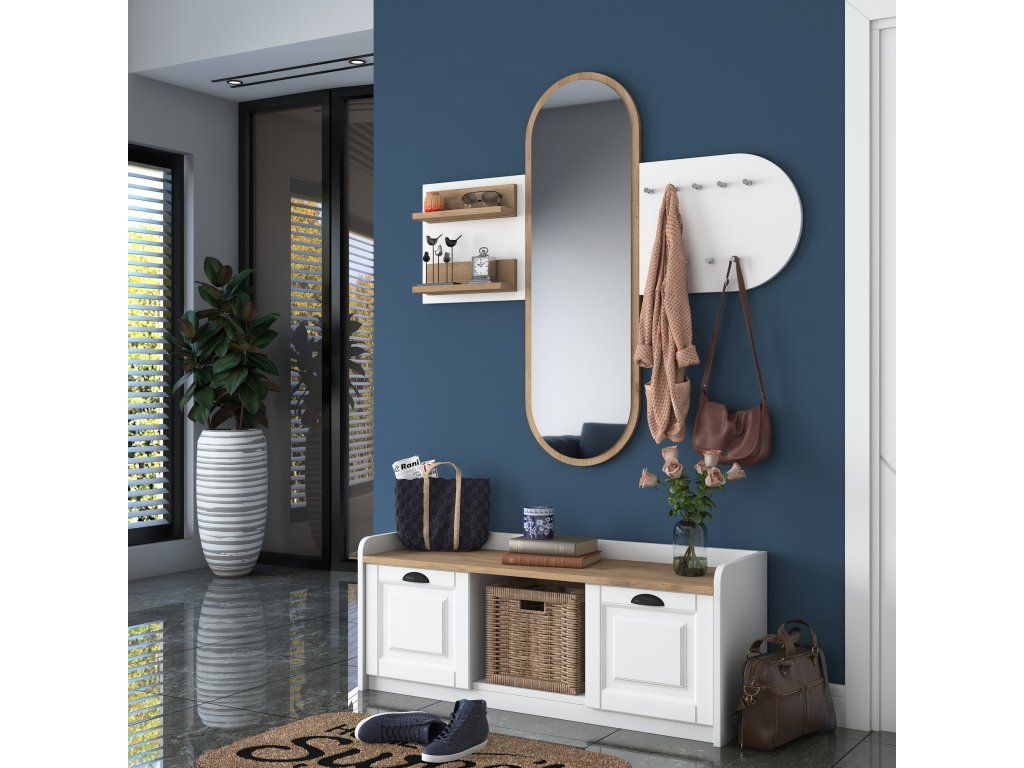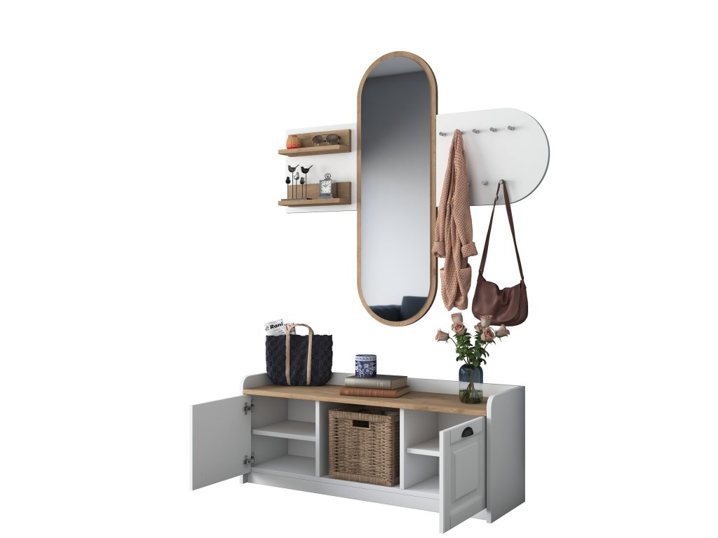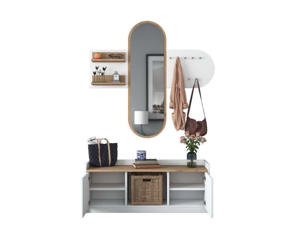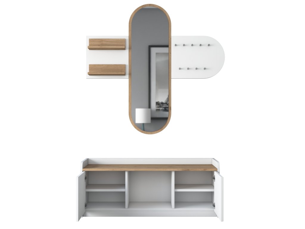 RIVOLI předsíňová stěna se zrcadlem, bílá/ořech