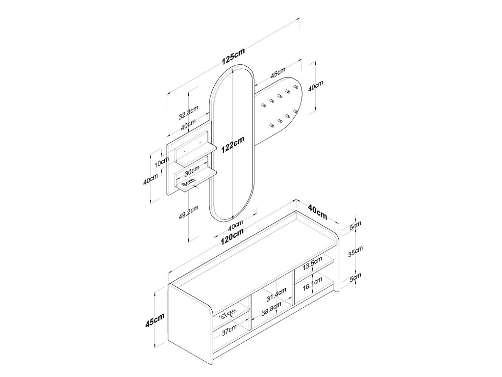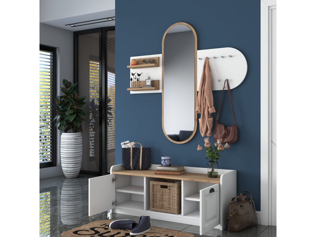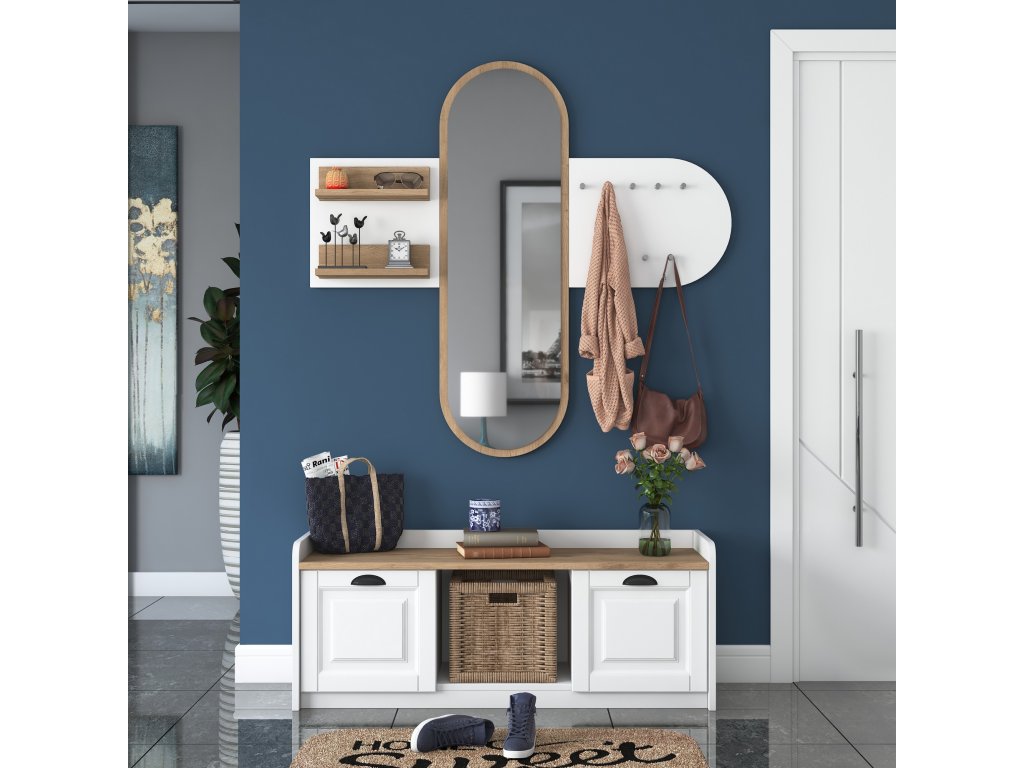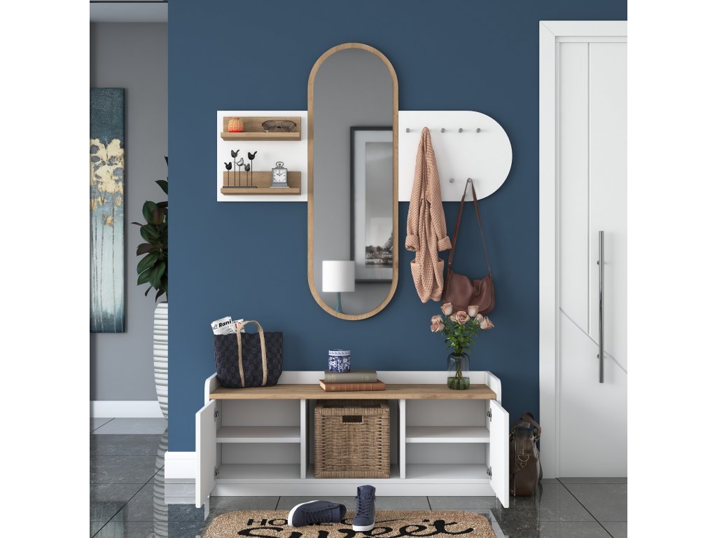 RIVOLI předsíňová stěna se zrcadlem, bílá/ořech