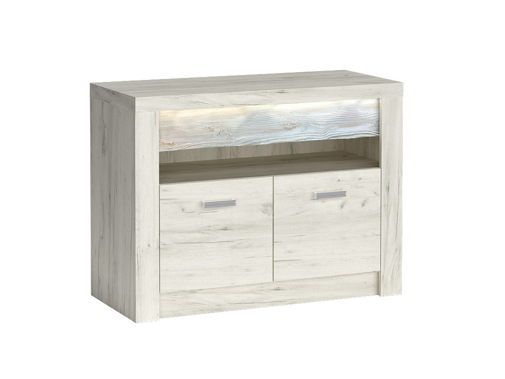 Komoda ze sektorové řady. Za dvířky je 1 police. Systém je exkluzivní kolekce navržena v moderním duchu. Vsazením LED osvětlení do ozdobné rýhované lišty, které najdete v naší další nabídce k dokoupení, je zvýrazněn rustikální vzhled masivního dřeva. Celá řada se vyznačuje elegancí a jednoduchými tvary, které zaručují plné využití prostoru. Nábytek je vyroben z kvalitního lamina s ABS hrany ( 0,5-0,8 mm ). Barevné provedení jasan bílý. Dodáváme v demontovaném stavu.Doplňkové parametry