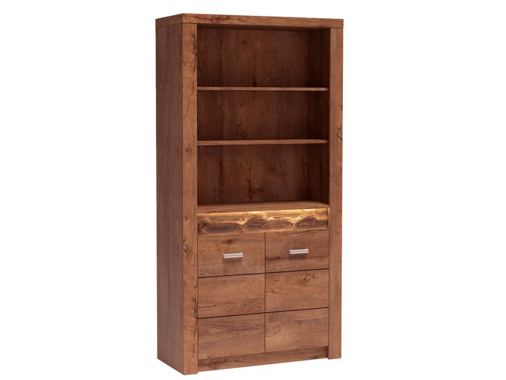 Regál ze sektorové řady. Za dvířky je 1 police. Systém je exkluzivní kolekce navržena v moderním duchu. Vsazením LED osvětlení do ozdobné rýhované lišty, které najdete v naší další nabídce k dokoupení, je zvýrazněn rustikální vzhled masivního dřeva. Celá řada se vyznačuje elegancí a jednoduchými tvary, které zaručují plné využití prostoru. Nábytek je vyroben z kvalitního lamina s ABS hrany ( 0,5-0,8 mm ). Barevné provedení jasan světlý. Dodáváme v demontovaném stavu.Doplňkové parametry