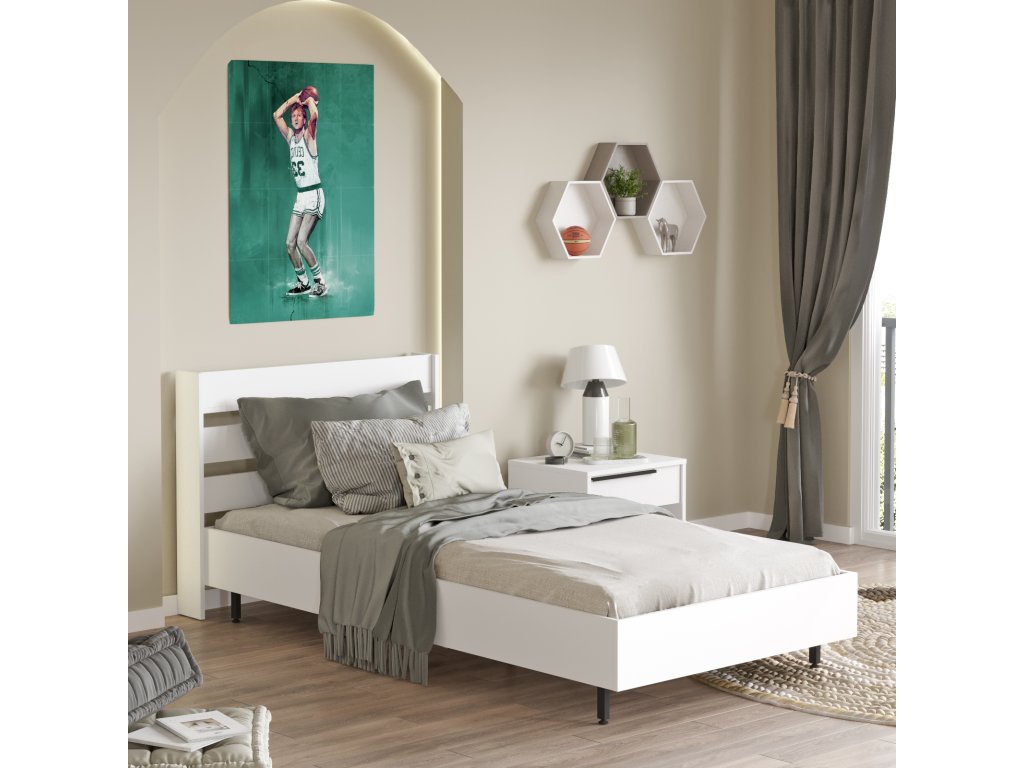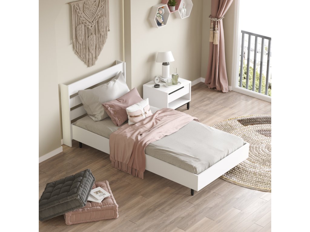 Jednolůžko je ideálním řešením pro moderní ložnici nebo dětský pokoj. Vyrobeno z kvalitního LTD materiálu a kovu, nabízí odolnost, pohodlí a moderní vzhled. Díky rozměrům 100 x 200 cm poskytuje dostatek prostoru pro jednoho, zatímco jeho design a barva snadno zapadnou do jakéhokoli interiéru.