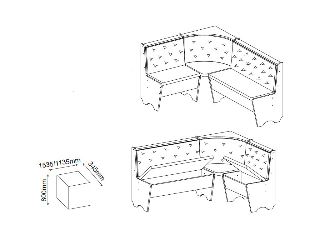 Čalouněná jídelní rohová lavice s úložným prostorem je vyrobena z kvalitní LTD desky v barvě matná bílá. Čalounění je v barvě viz obrázek. Součástí kuchyňského setu je: - rohová lavice s ÚP, v/š/h: 80 / 153,5 x 113,5 / 46 cm - 2x taburet, v/š/h: 43,5 / 35 / 35 cm, - rozkládací jídelní stůl: v/š/h: 76 / 89-118 / 59 cm. Hloubka sedu je cca 36 cm. Dodáváme v demontovaném stavu.Doplňkové parametry