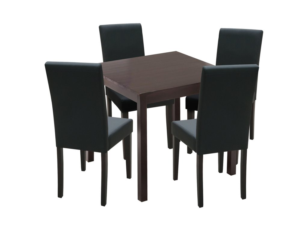 jídelní stůl 8842H a 4 jídelní židle PRIMA 3034 stůl: materiál masiv tmavohnědý lak židle: nohy materiál masiv, barevné provedení tmavě hnědý lak potah kůže – imitace, barevné provedení černá, výška sedu 47 cm rozměr stolu (š/h/v) 75 × 75 × 73 cm rozměr židle (š/h/v) 45 × 55 × 90 cmDoplňkové parametry