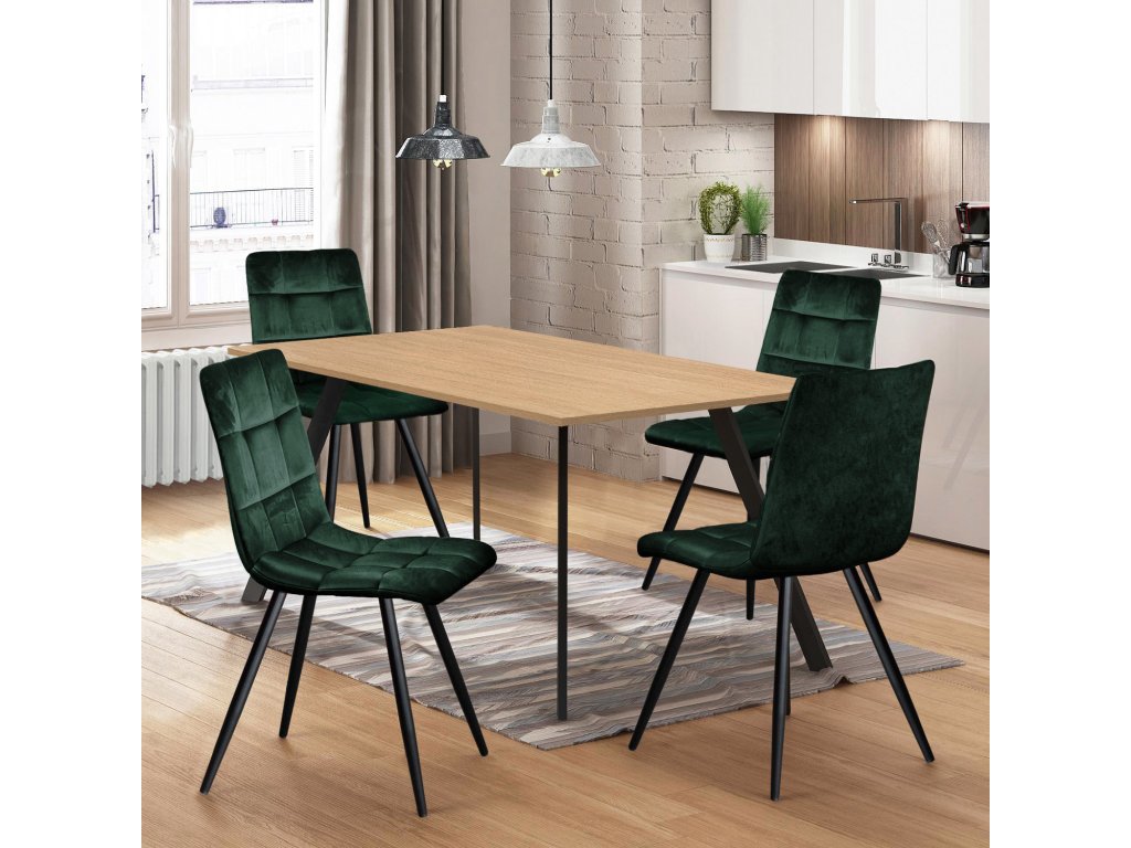 Jídelní stůl 120x80 BERGEN dub + 4 židle BERGEN zelený samet