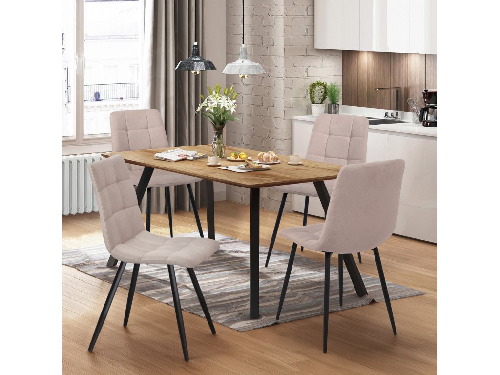 Jídelní stůl 140x80 BERGEN dub + 4 židle BERGEN béžová