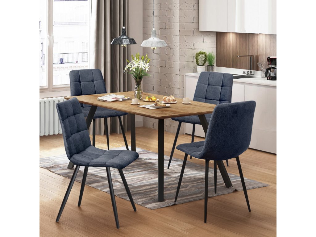 jídelní stůl BERGEN 4090 a 4 jídelní židle BERGEN 4097 stůl: deska MDF, barevné provedení dub Wotan kovová konstrukce, barevné provedení černá židle: textilní potah, barevné provedení antracitová kovová konstrukce, barevné provedení černá rozměr stolu (š/h/v) 140 × 80 × 75 cm rozměr židle (š/h/v) 45 × 55 × 88 cmDoplňkové parametry
