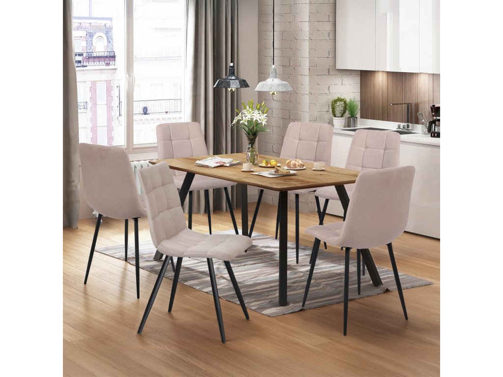 Jídelní stůl 140x80 BERGEN dub + 6 židlí BERGEN béžová