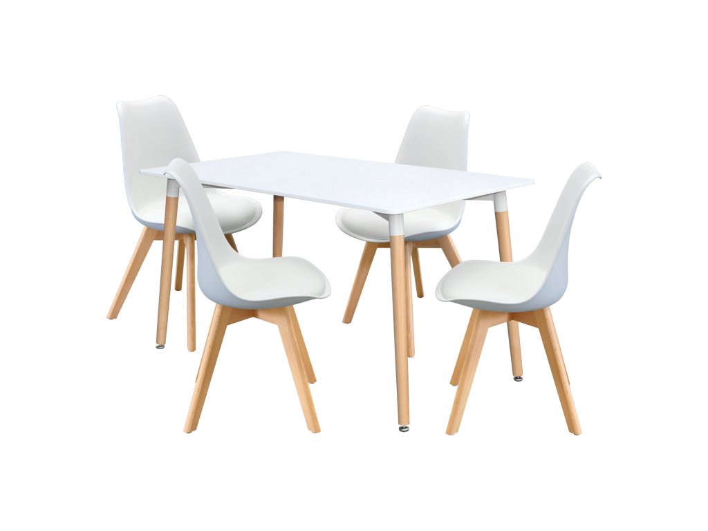 Jídelní stůl 140x90 QUATRO bílý + 4 židle QUATRO bílé