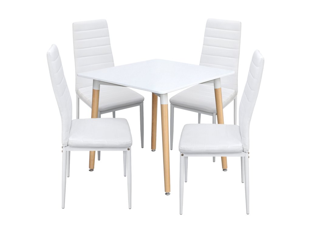 jídelní stůl ONE 3150 a 4 jídelní židle SIGMA 3164 stůl: deska MDF, barevné provedení bílá kovová konstrukce, barevné provedení bílá kulaté nohy, materiál masiv buk židle: potah kůže – imitace, barevné provedení bílá kovové nohy a konstrukce, výška sedu židle 47 cm rozměr stolu (š/h/v) 80 × 80 × 74 cm rozměr židle (š/h/v) 42 × 41 × 98 cmDoplňkové parametry