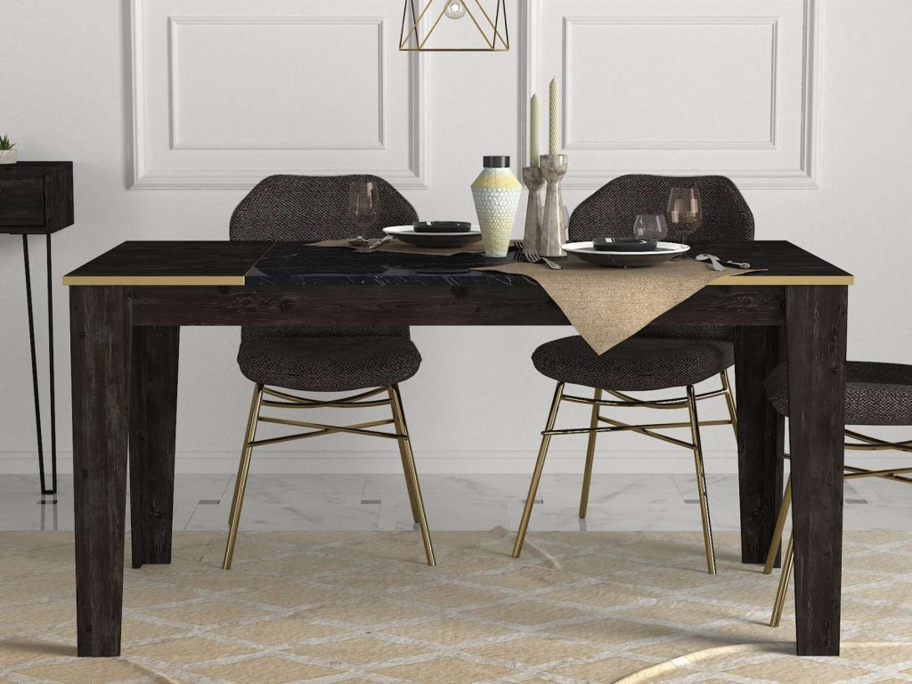Jídelní stůl vyniká svým sofistikovaným designem v kombinaci tmavě hnědé barvy a mramorového vzhledu, který dodá každému interiéru nádech elegance. Díky svému obdélníkovému tvaru a velikosti je ideální pro pohodlné posezení až šesti osob.