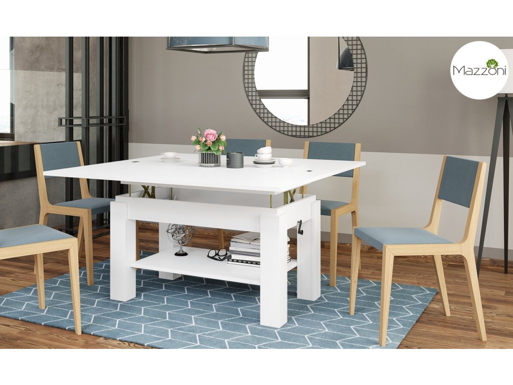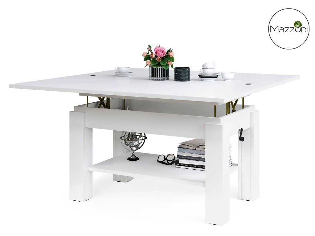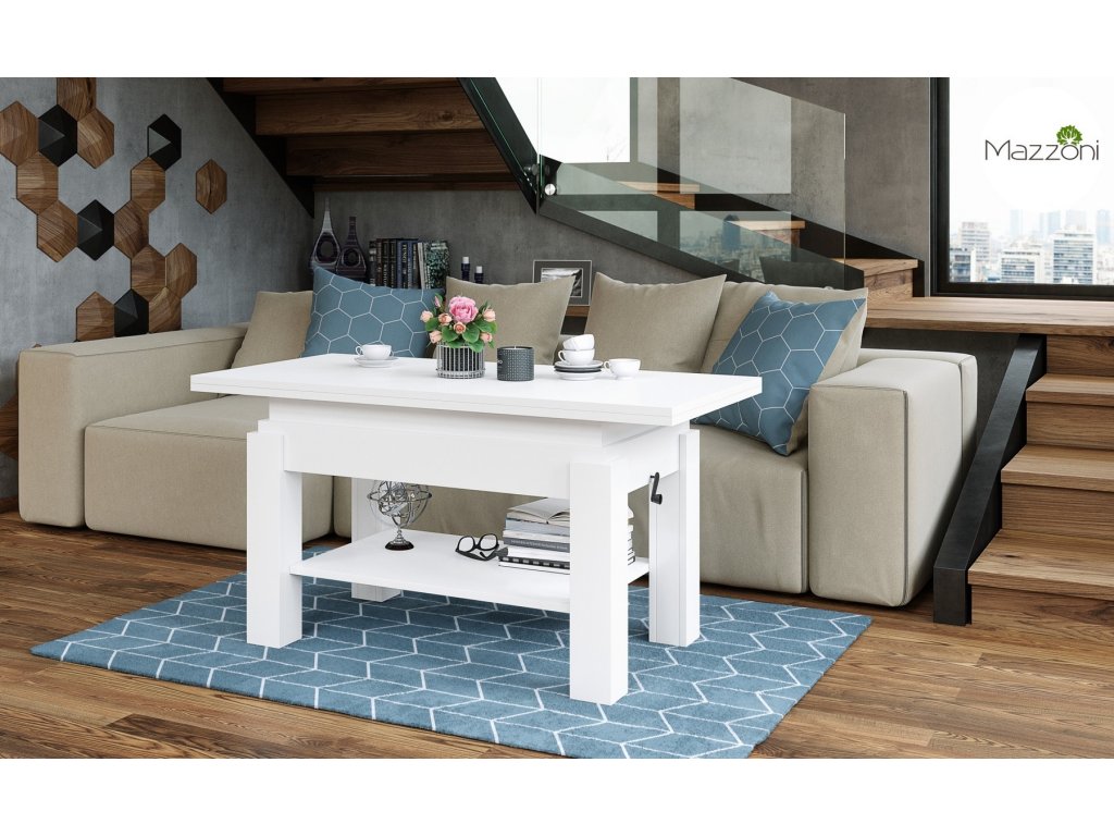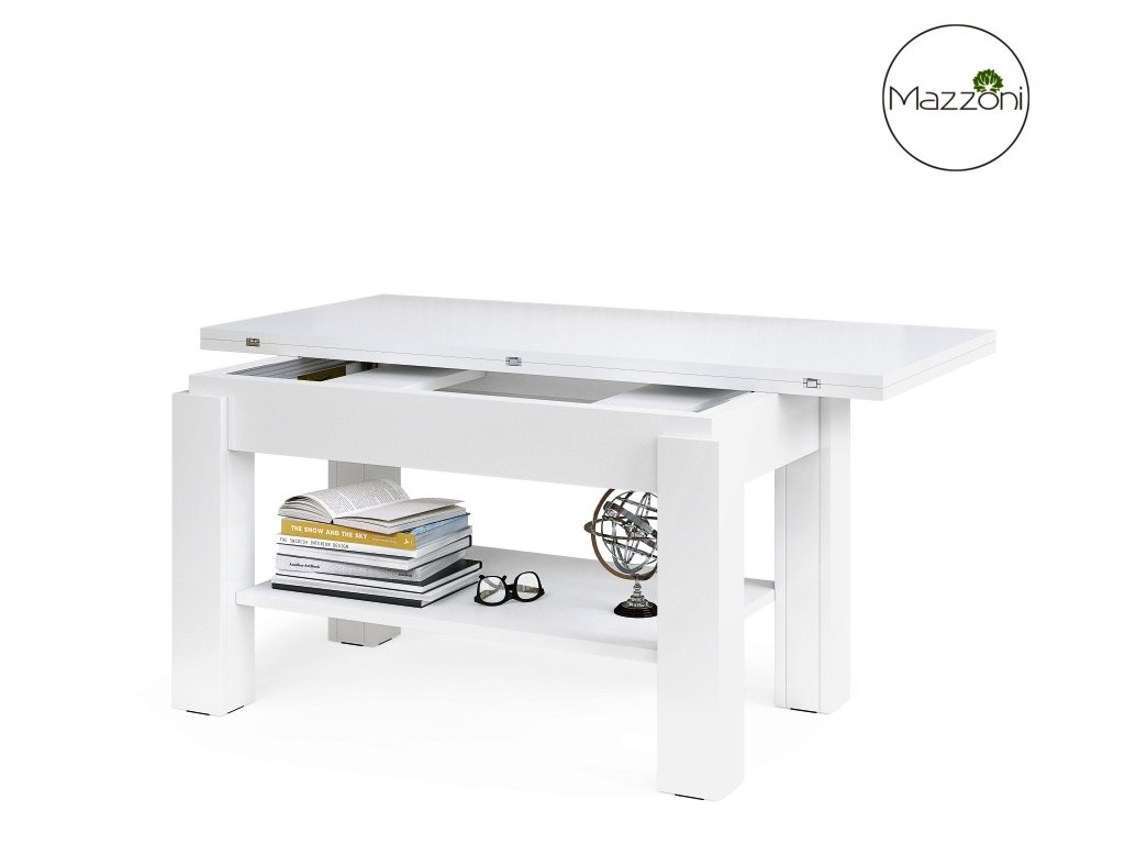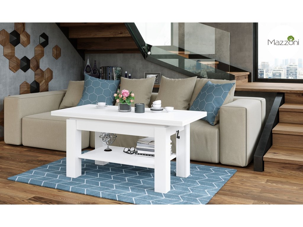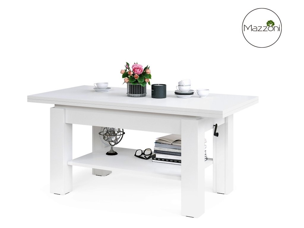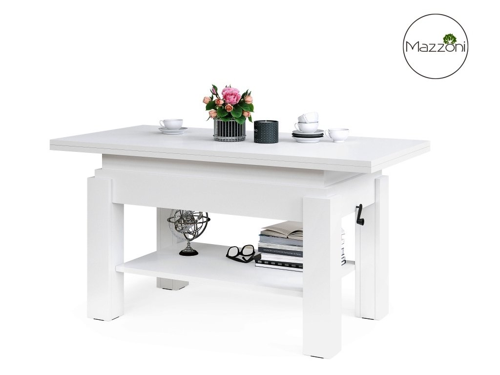 Elegantní a velmi praktický konferenční stůl rozložitelný na jídelní stůl v moderním pojetí. Vhodný do menších prostorů. Výhodou tohoto stolu je nastavitelná nejen výška, kdy po zvýšení a rozkladu desky je možno ho použít ke stolování, deska stolu lze 2 x zvětšit. Základní rozměr u konferenčního stolu je 65 x 130 x 60 cm, po rozložení výška až 72 cm, desku stolu zvětšíte na 130 x 130 cm. Barevné provedení je matná bílá. Dodáváme v demontovaném stavu.Doplňkové parametry