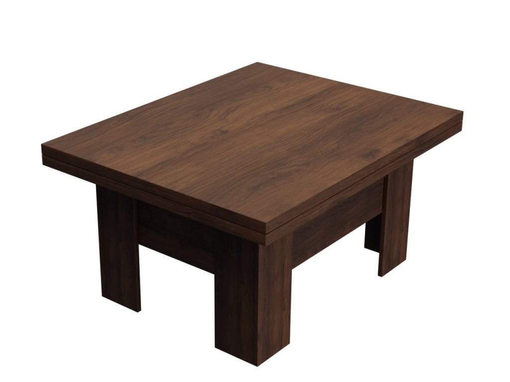 Elegantní konferenční stůl s funkcí jídelního stolu v moderním pojetí. Výhodou tohoto stolu je nastavitelná výška, kdy po zvýšení a rozkladu desky je možno ho použít ke stolování. Masivní deska je z LTD 32 mm opatřena ABS páskou 2 mm, otevírací mechanismus je vysoké kvality. Barevné provedení - ořech warnia. Plocha před rozložením je 80 x 100 cm, po rozložení 80 x 200 cm. Výška se po rozkladu z 53 cm zvýší na 78 cm. Dodáváme v demontovaném stavu.Doplňkové parametry