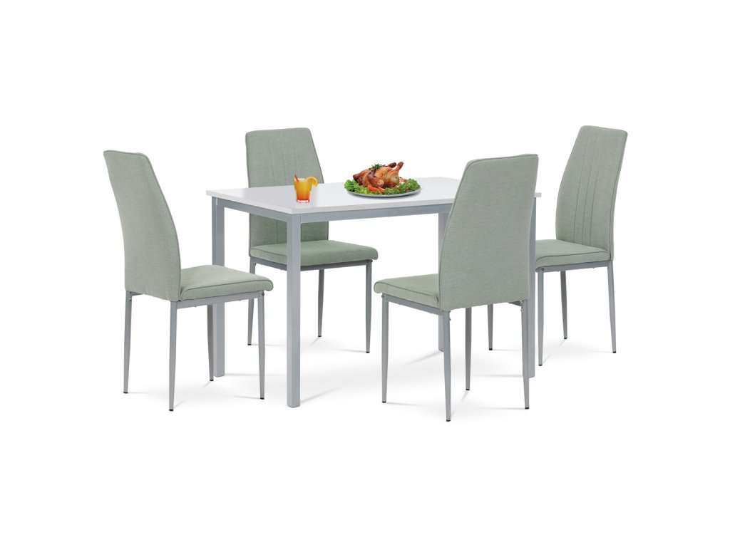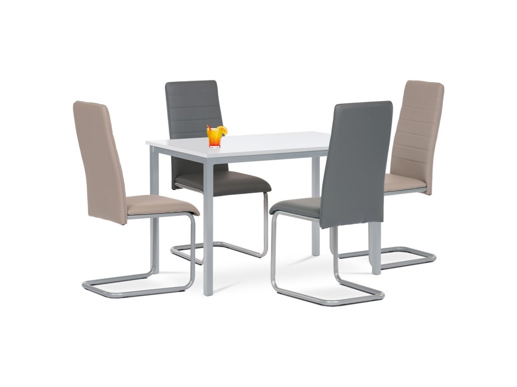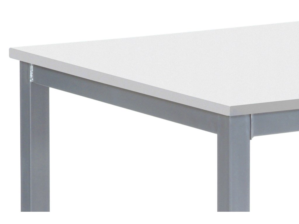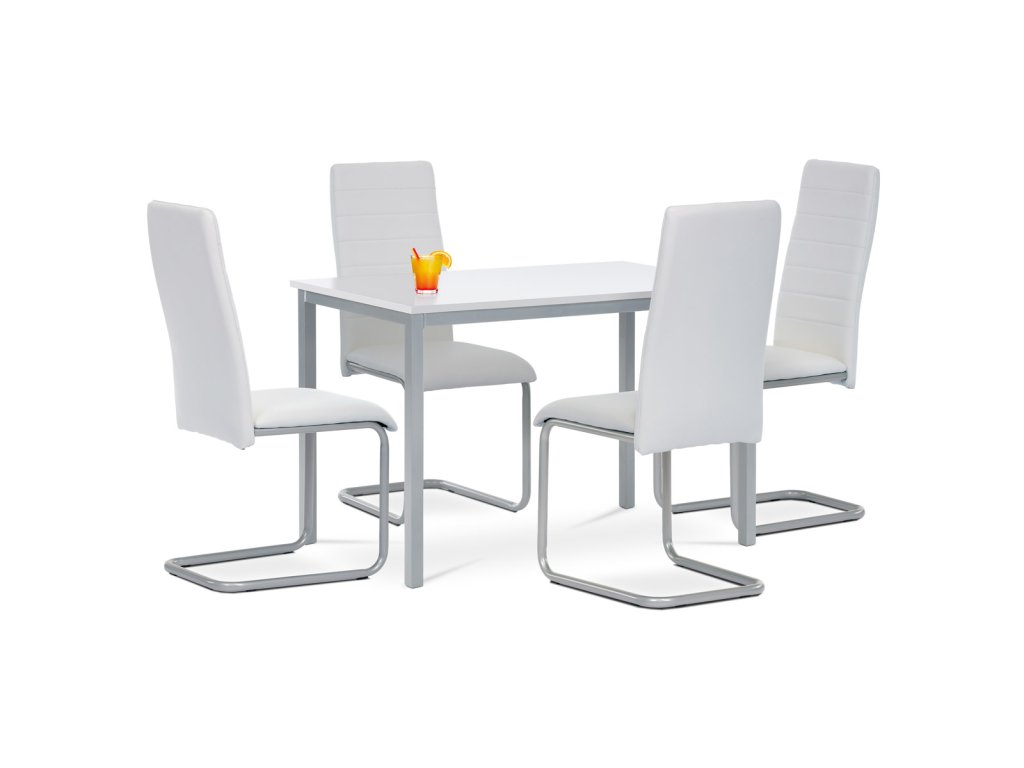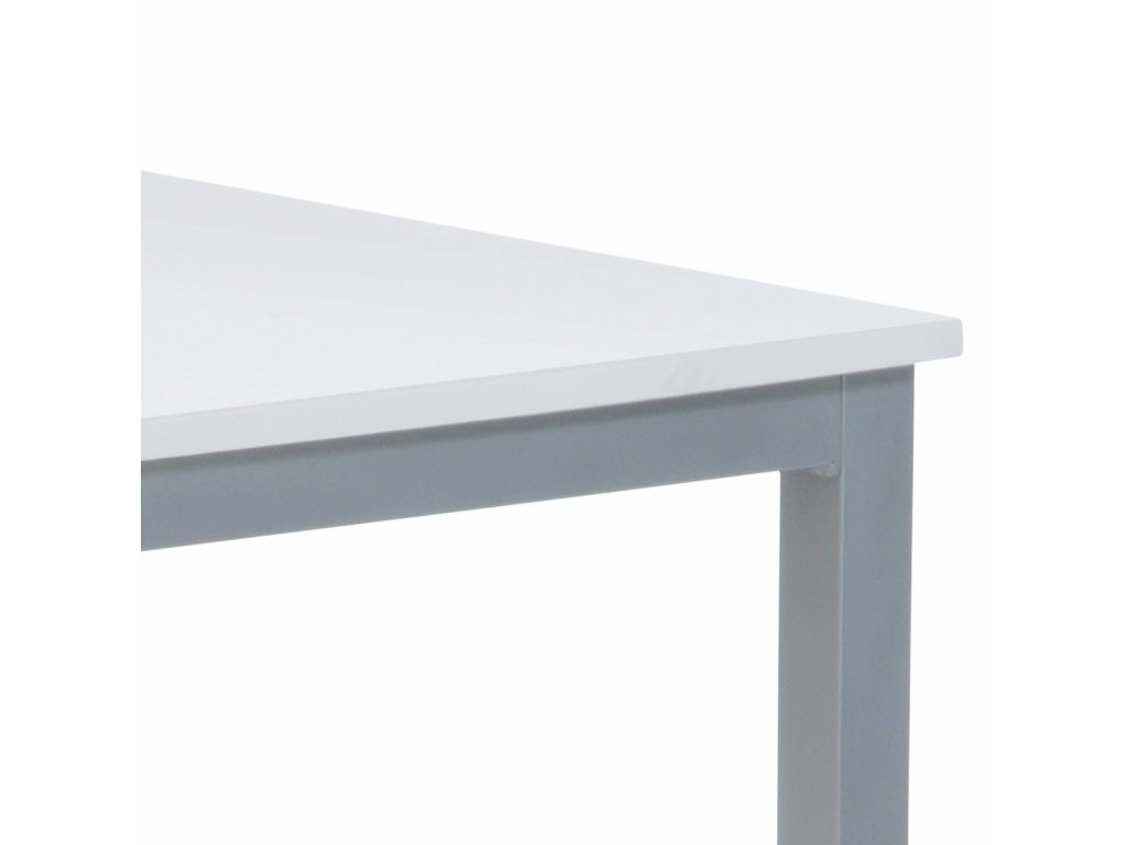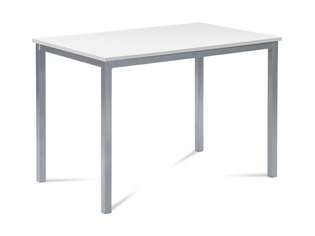 Jídelní stůl o délce 110 cm a šířce 75 cm v minimalistickém klasickém stylu. Stolní deska tl. 2 cm je z čistě bílé matné MDF obdélníkového tvaru. Nohy a konstrukce je kovových profilů čtvercového průřezu. Nohy jsou ve spodní části opatřeny plastovými záslepkami s kluzáky, zabraňující poškození podlahové krytiny. Povrchová úprava je práškovou vypalovací barvou ve stříbrnošedém odstínu.Výška stolu je 75 cm. Stůl se hodí do menších a střídně zařízených kuchyní i jídelen, svým neutrálním designem najde úspěšné uplatnění i v jiných prostorách. Dále je ho možné použít i jako psací či pracovní na lehčí činnosti, vzhledem k jeho subtilnosti. Vhodné židle jsou nejen se stejně barevnou podnoží, ale nebojte se experimentovat i se dřevem či plastem. Ke stolu je možné umístit 4 židle.Doplňkové parametry