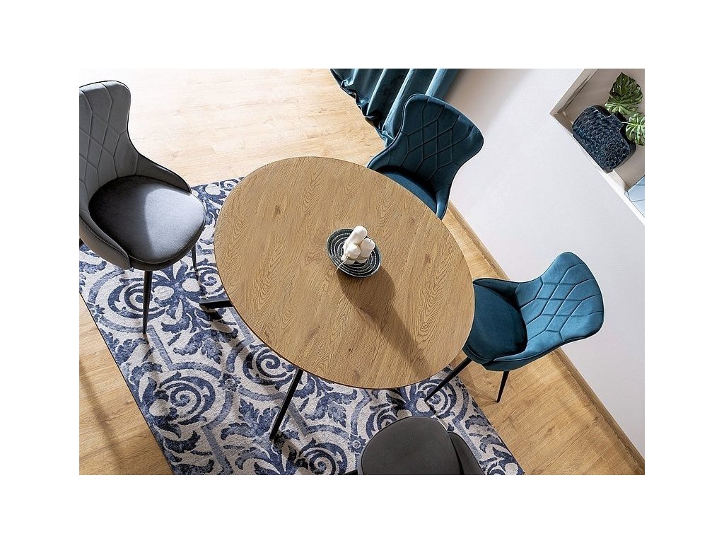 Jídelní stůl který zaujme svým tvarem a bude ozdobou každého interiéru. Deska stolu je vyrobena z kvalitní MDF a přírodní dýhy v barvě dub, nohy stolu jsou z kovu v černé barvě. K tomuto stolu doporučujeme židle v naší nabídce. Dodáváme v demontovaném stavu.Doplňkové parametry